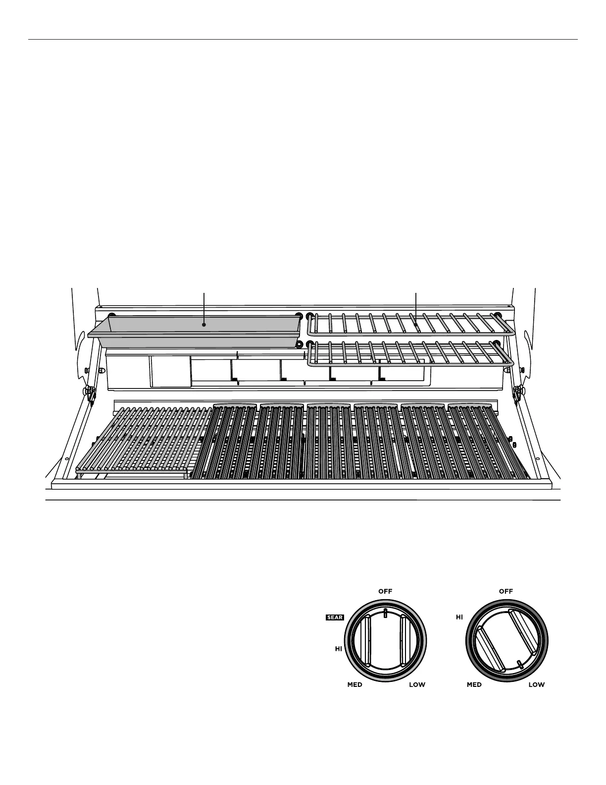 Do not use the rotisserie burner when the secondary cooking racks or trays are in place. Before using