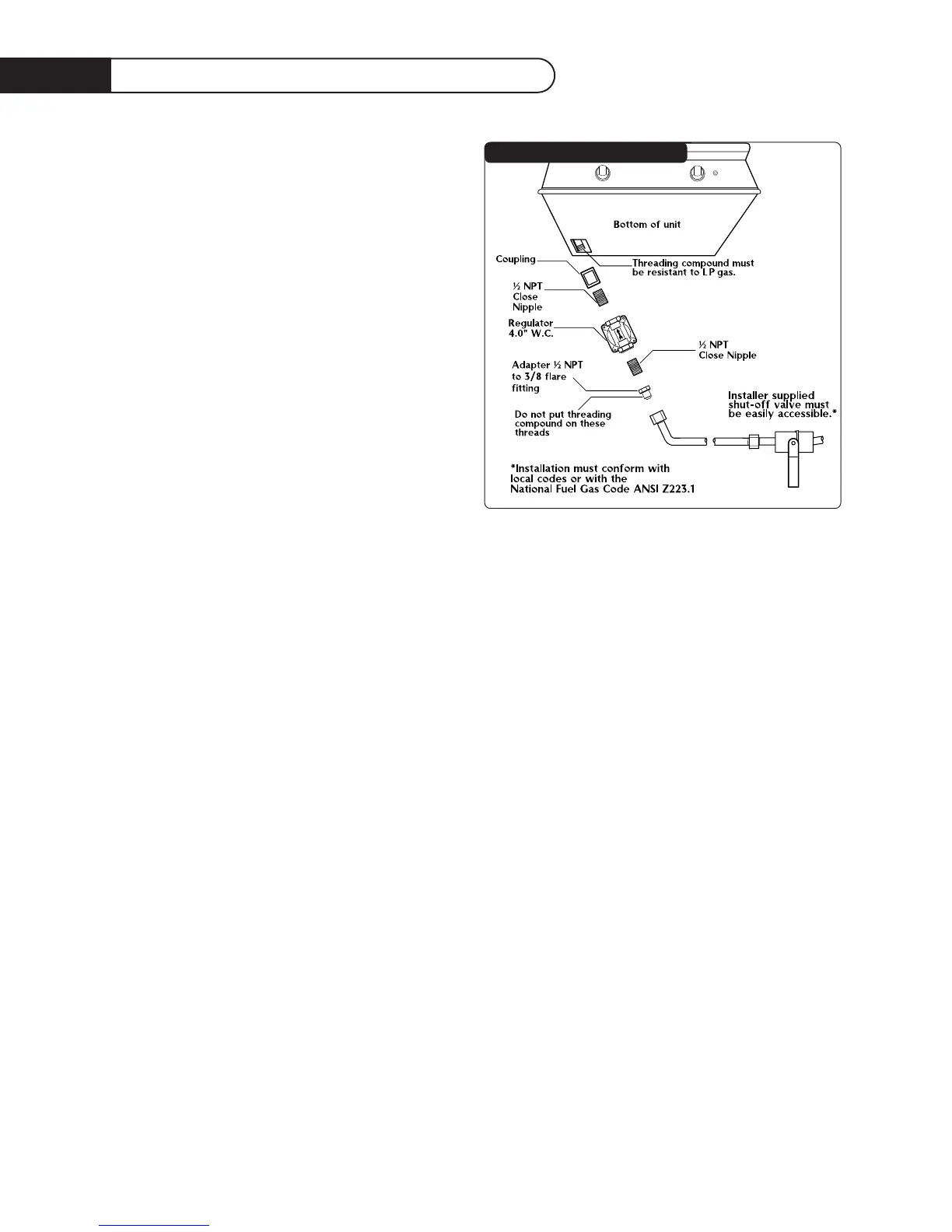 of local codes, with the national fuel gas code, ANSI Z223.1a-1988. Installation in Canada must be in