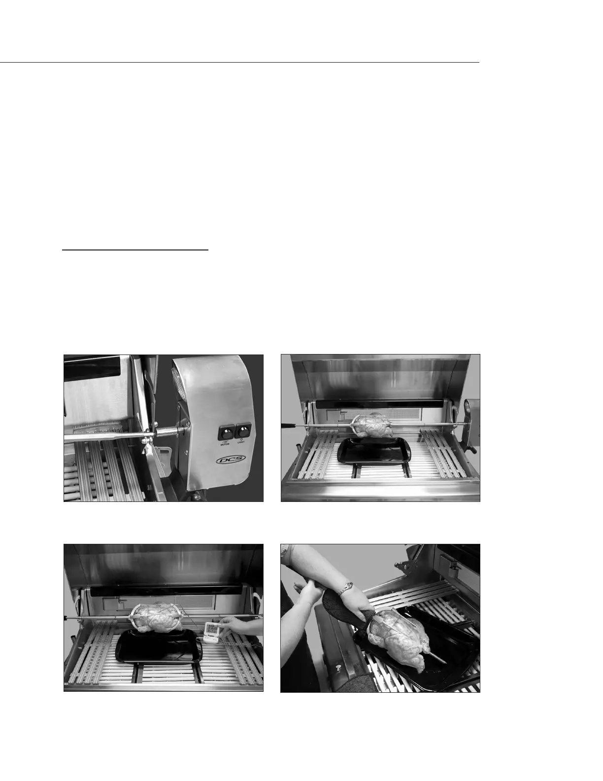 3. Ignite Burner, start Rotisserie Motor, and keep on High for cooking all meats on the Rotisserie.