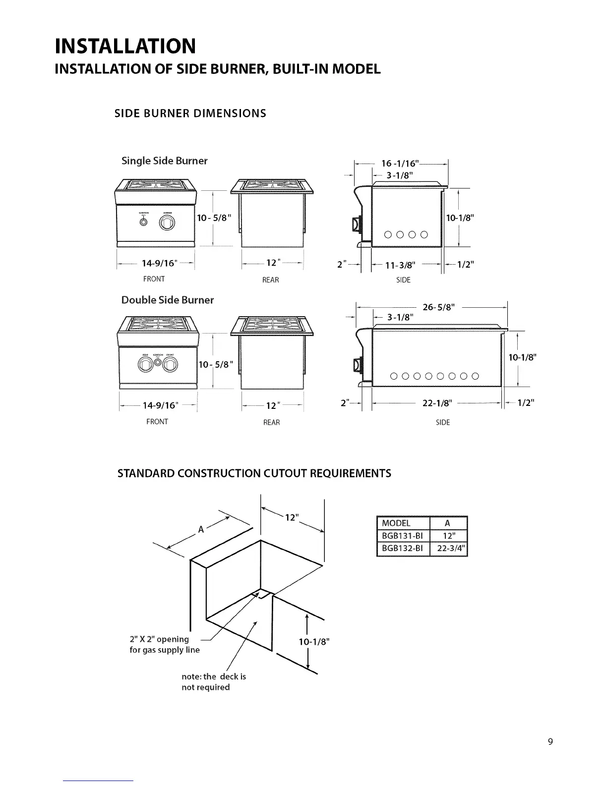 INSTALLATION OF SIDE BURNER, BUILT-IN MODEL