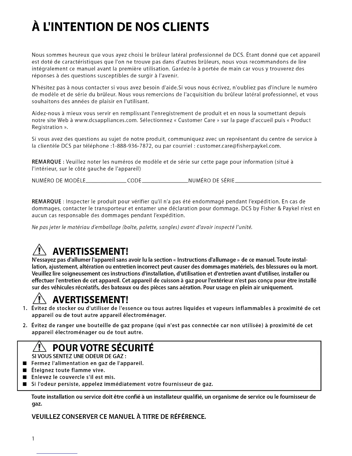 Nous sommes heureux que vous ayez choisi le brOleur lat6ral professionnel de DCS. letant donn_ que cet appareil