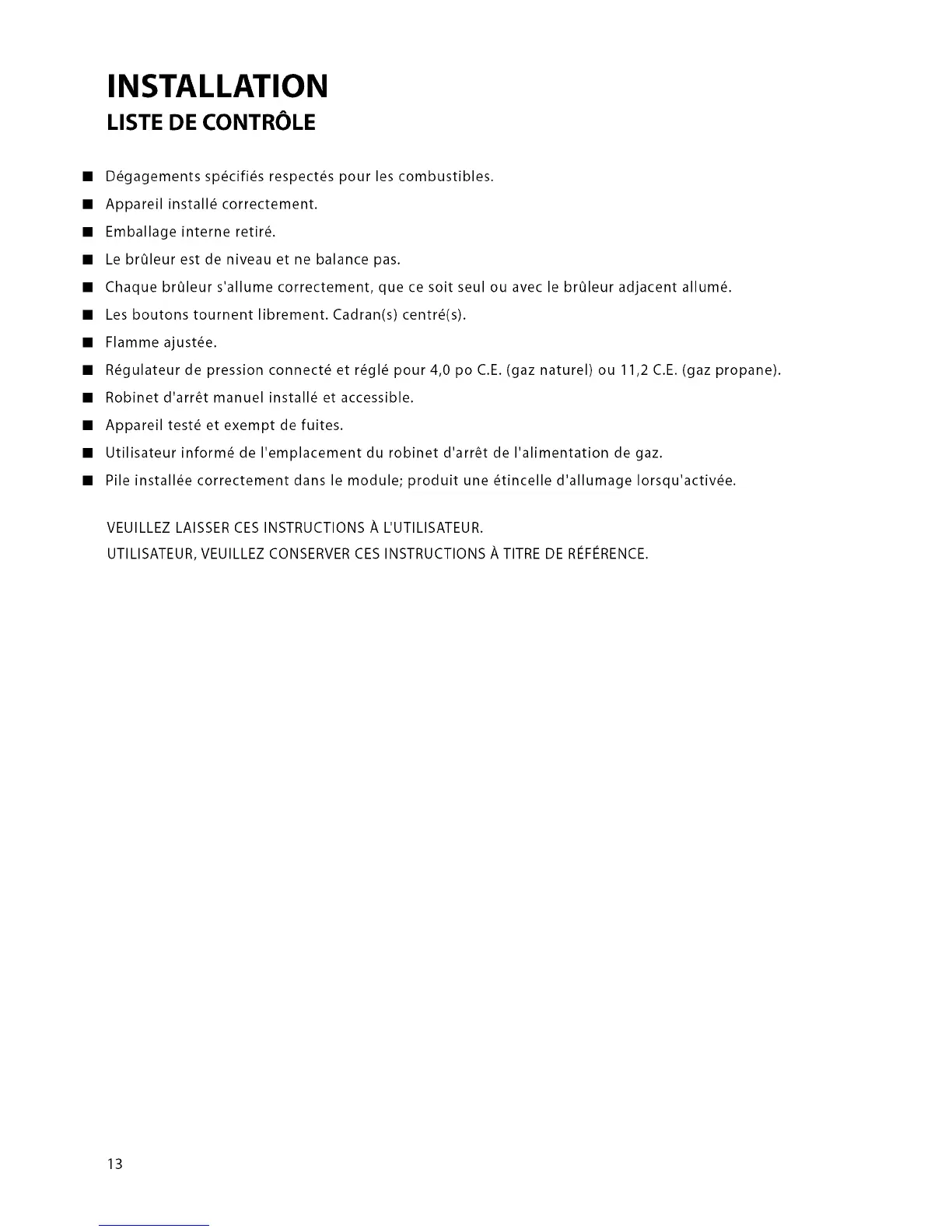 • Utilisateur inform_ de I'emplacement du robinet d'arr_t de I'alimentation de gaz.