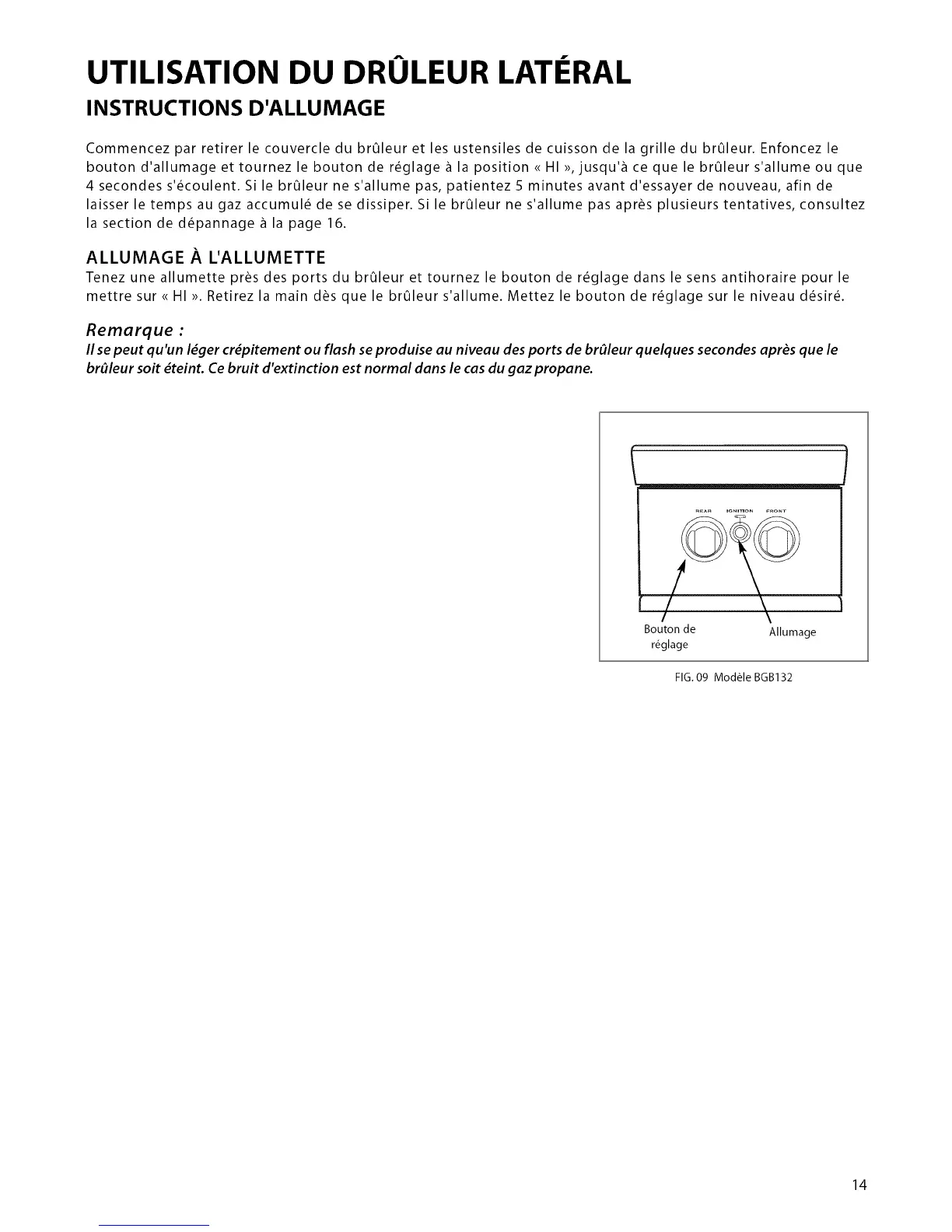 bouton d'allumage et tournez le bouton de r_glage _ la position <_HI >>,jusqu'_ ce que le brOleur s'allume ou que