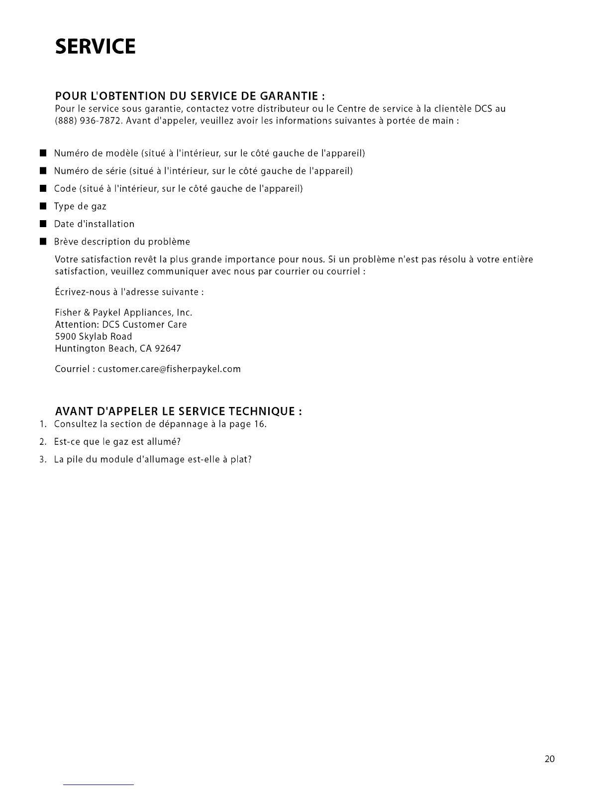 Courriel : customer.care@fisherpaykel.com