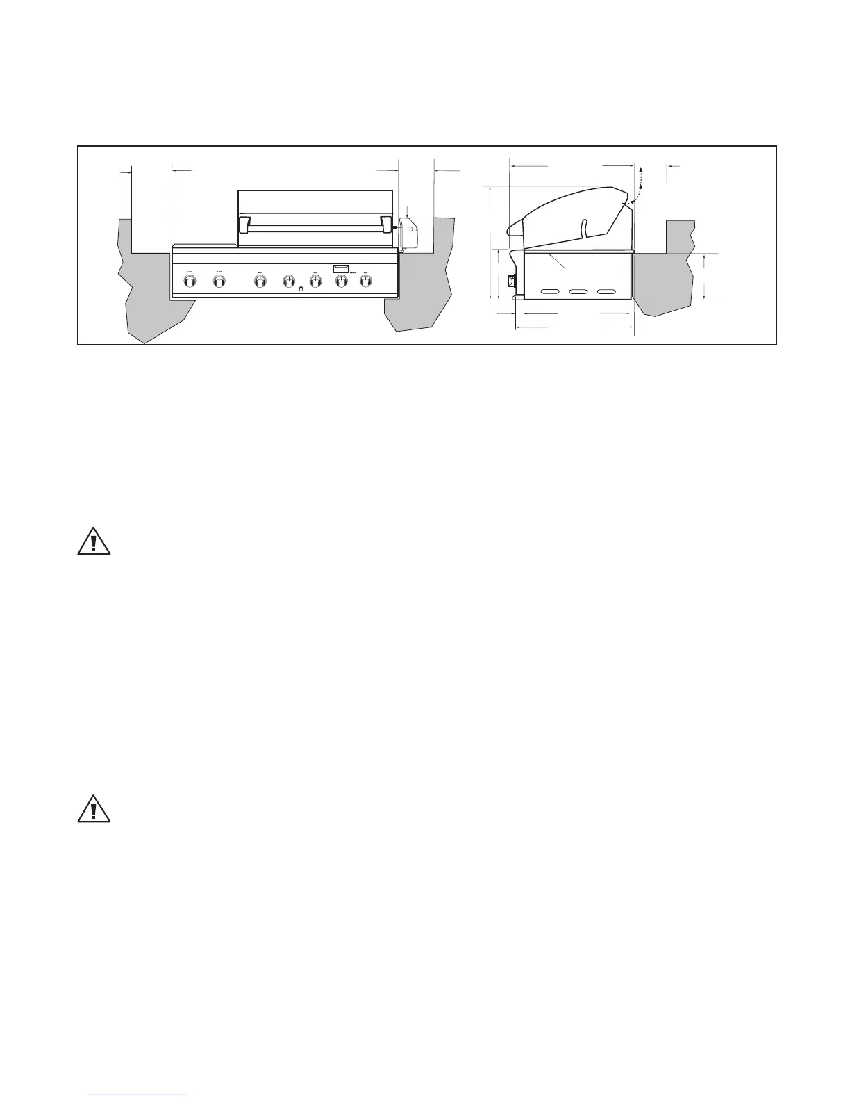 The grill is designed for easy placement into built-in masonry enclosures. For non-combustible applications the