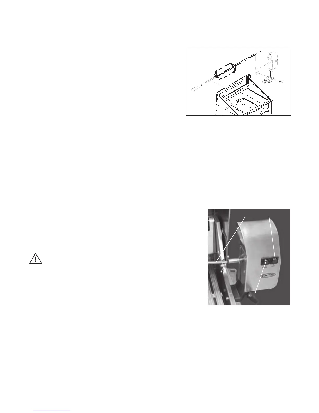 poultry. The rotisserie motor on the grills is secured down to a cast rotisserie block with two black screw- down