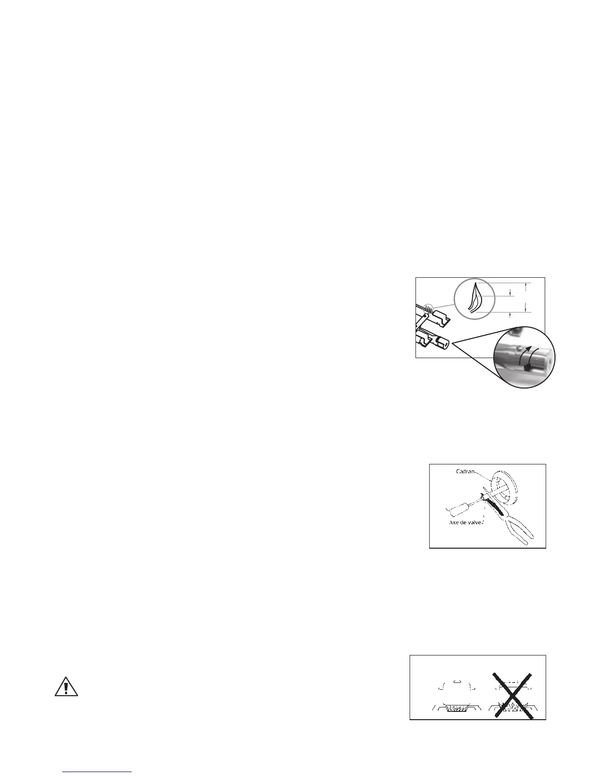 3. Si la flamme fait du bruit et tend à s’élever du brûleur, ce qui indique un excé-