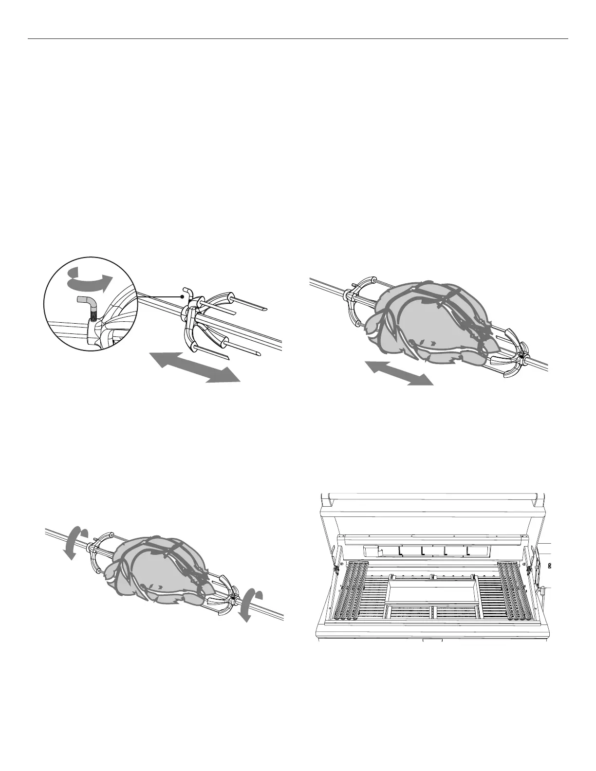 from top to bottom in size to ensure meat will cook evenly while on the rotisserie. For poultry,