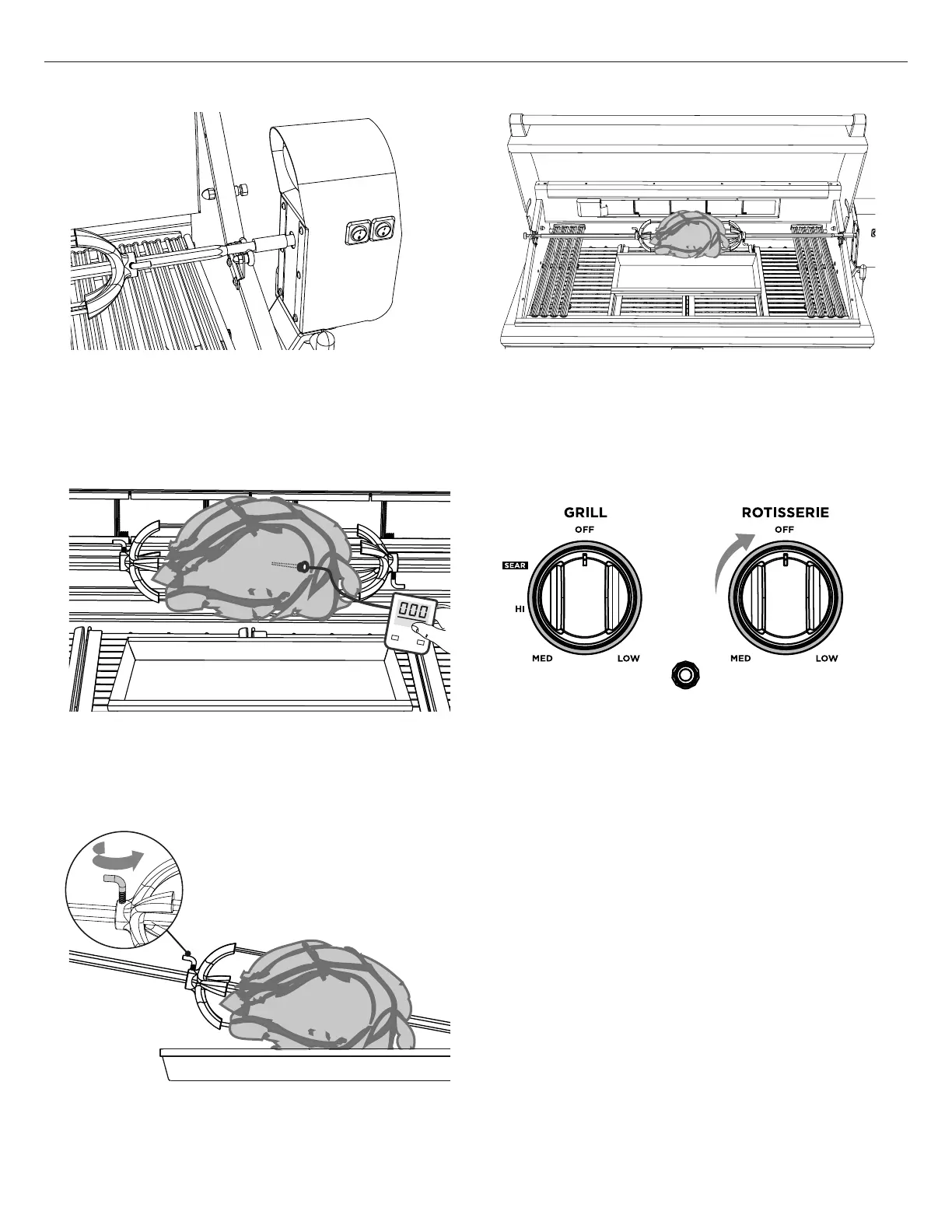 5 Retirez le tournebroche; utilisez les poignées