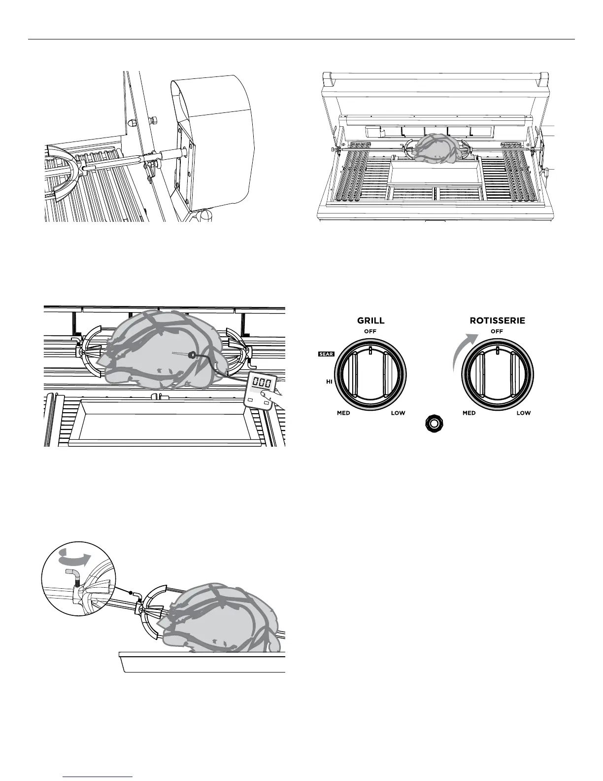 burner and start rotisserie motor. Keep on “HI”