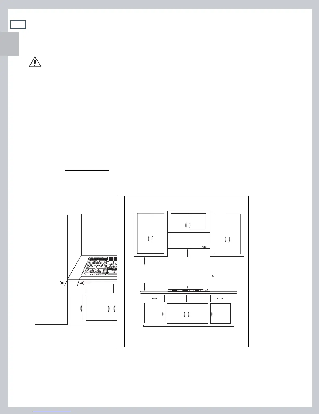 36” above the cooking surface. Due to a high volume of ventilation air, a source of outside replacement air is recom-