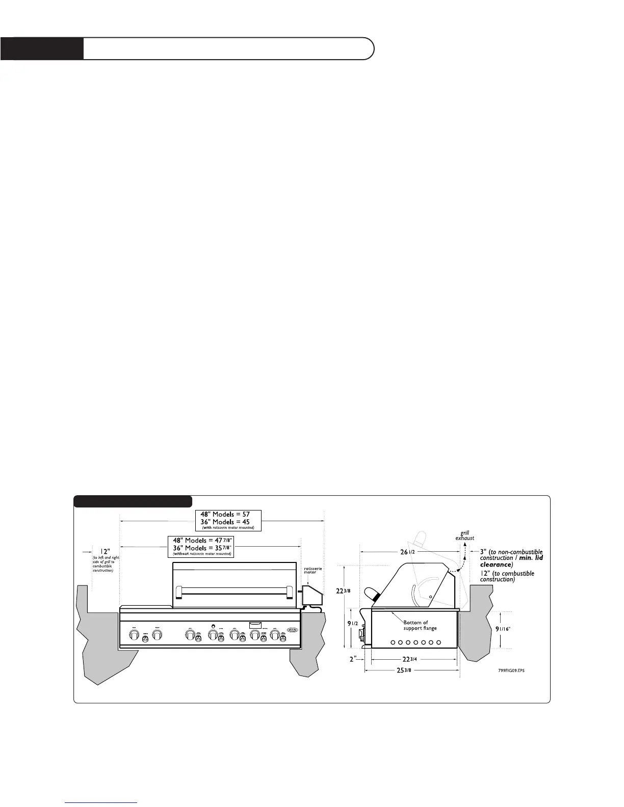Do not build the Grill under overhead unprotected combustible construction. If the Grill is to be
