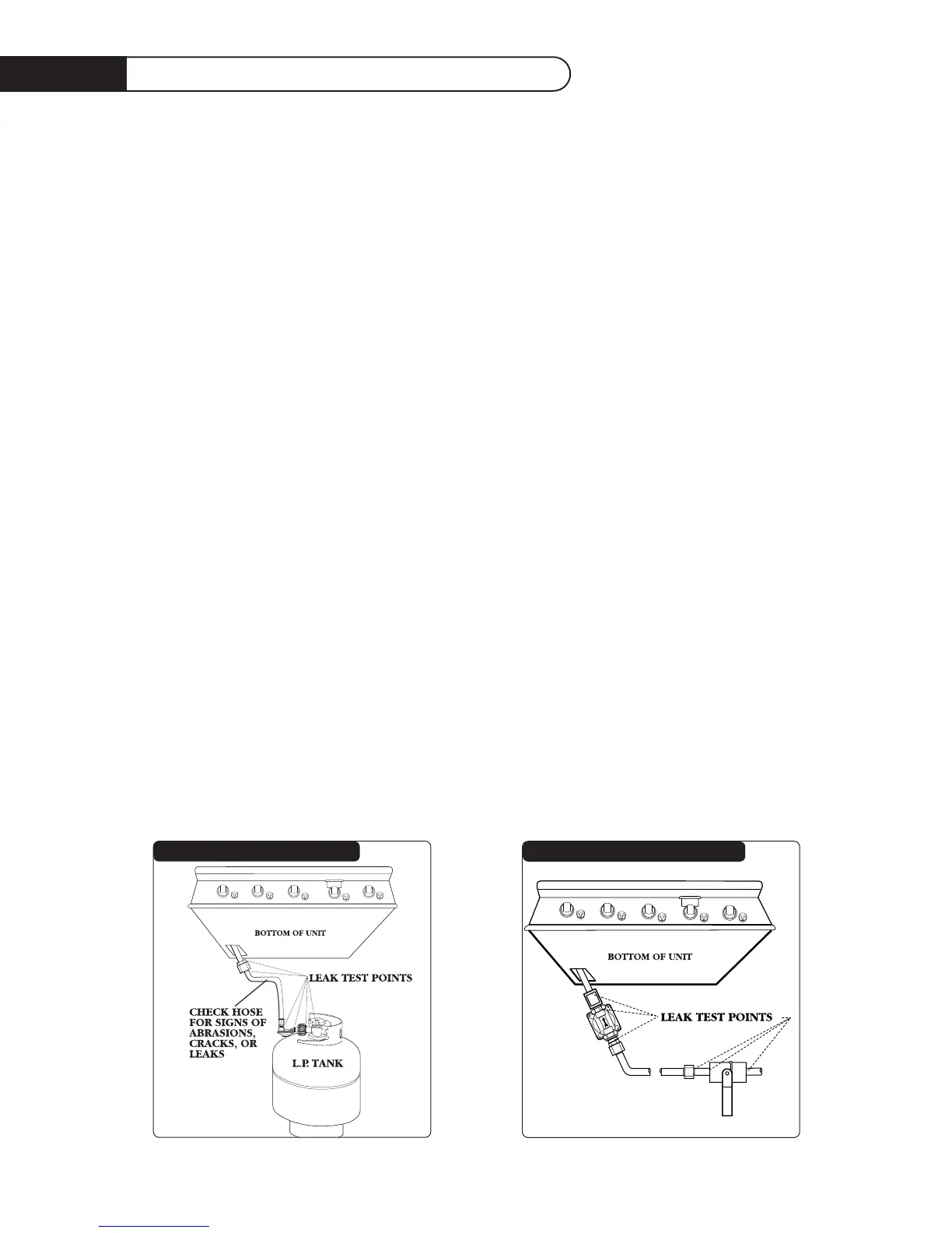 Although all gas connections on the grill are leak tested at the factory prior to shipment, a complete
