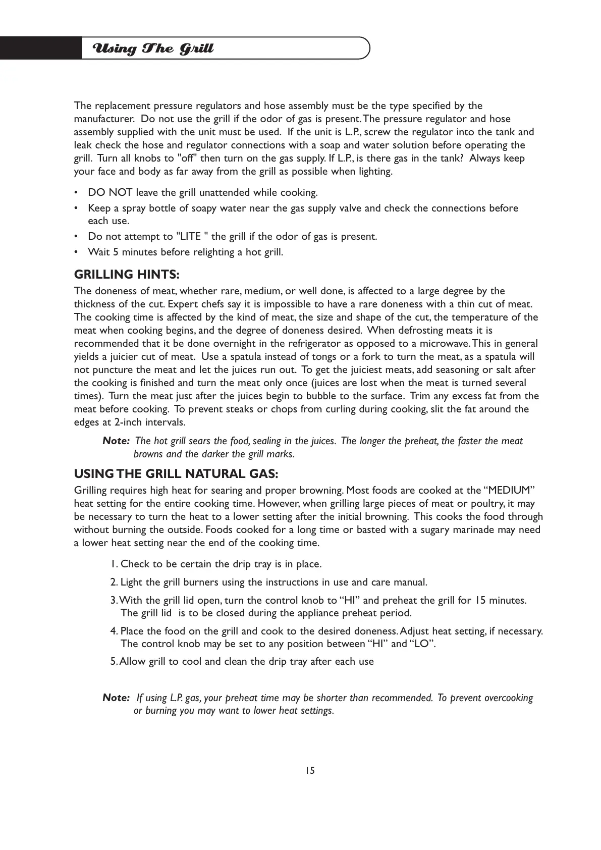 Note: If using L.P. gas, your preheat time may be shorter than recommended. To prevent overcooking