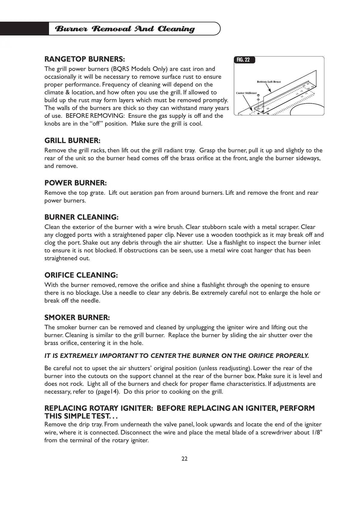 burner. Cleaning is similar to the grill burner. Replace the burner by sliding the air shutter over the