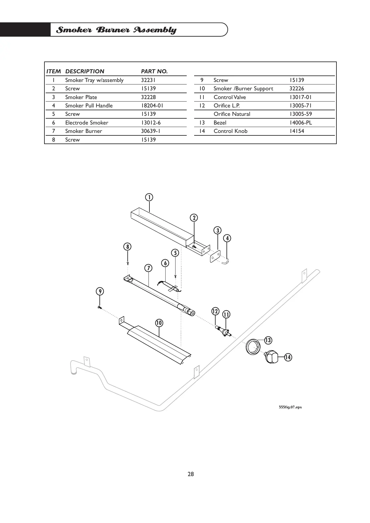 DCS DS Series - Smoker Burner Assembly; Parts List