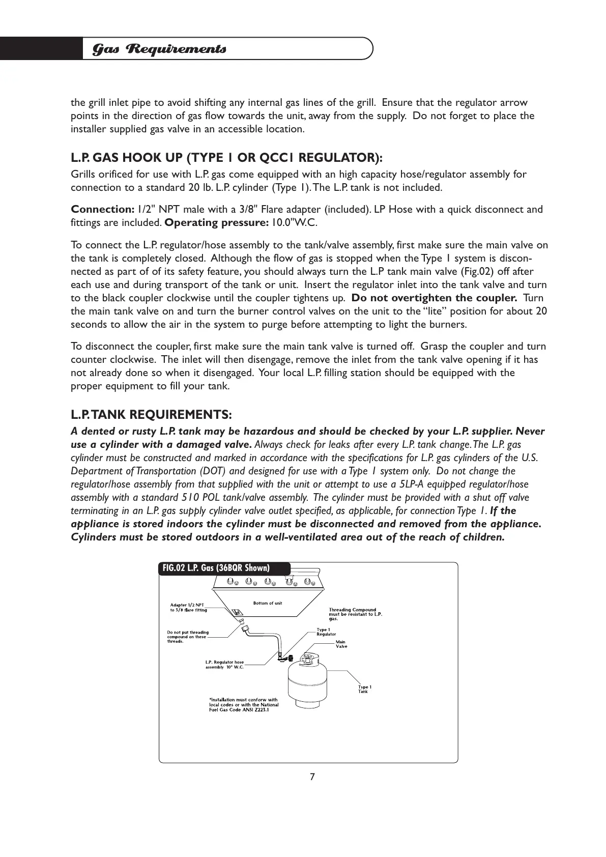 L.P. GAS HOOK UP (TYPE 1 OR QCC1 REGULATOR):