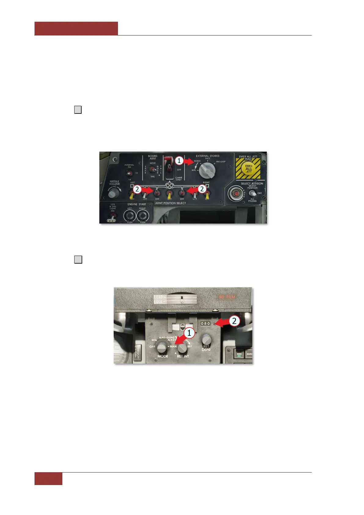 should be set to MAN. On the armament control panel, EXTERNAL STORES switch should