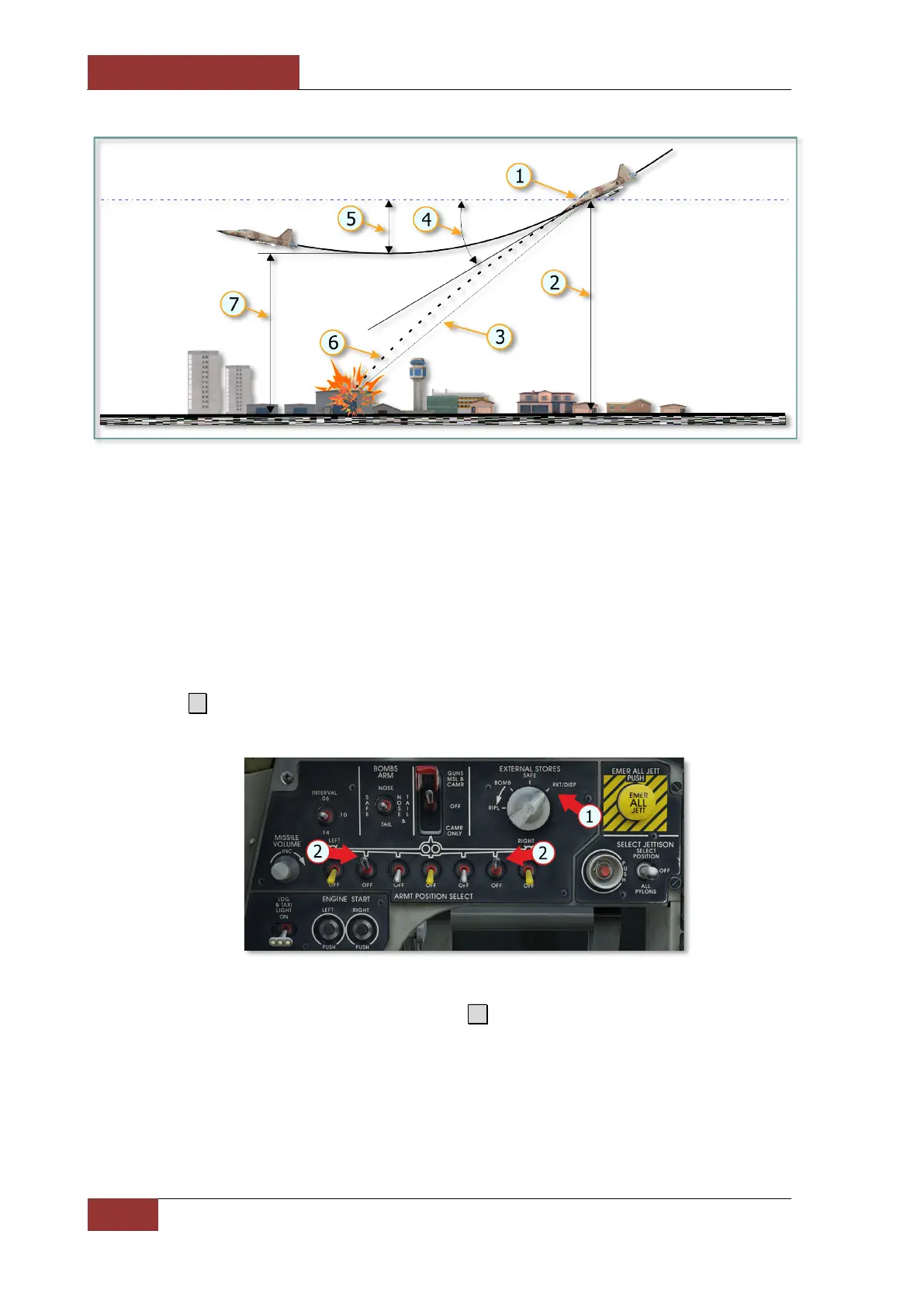 1. Press 7 to select AIR-TO-GROUND mode. On the armament control panel, the pylons with