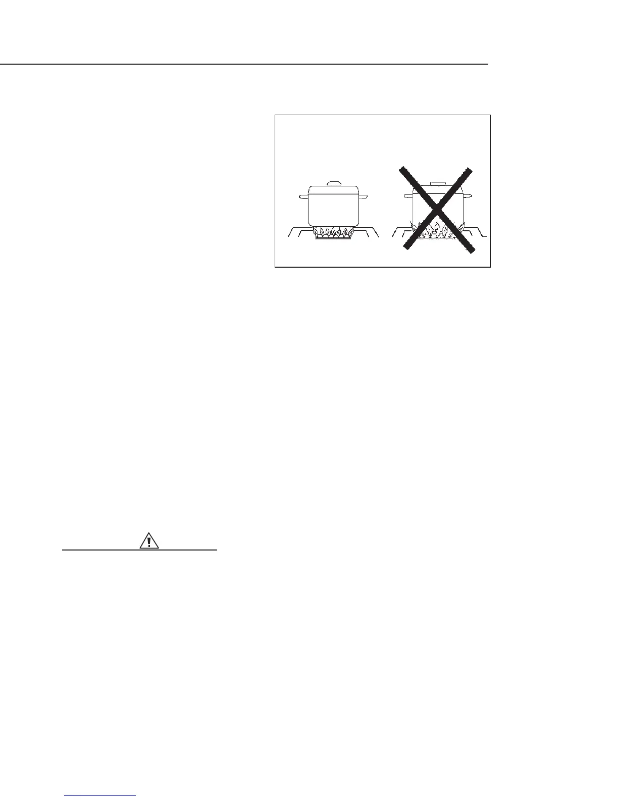 For safety reasons the flame must never extend beyond the bottom of the cooking utensil. Never