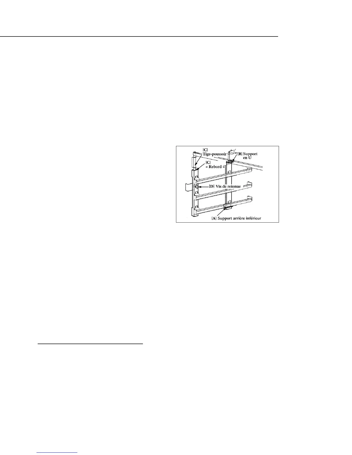 B) Guidez la partie arrière supérieure de l'ensemble de coulisse dans le support en U sur le côté