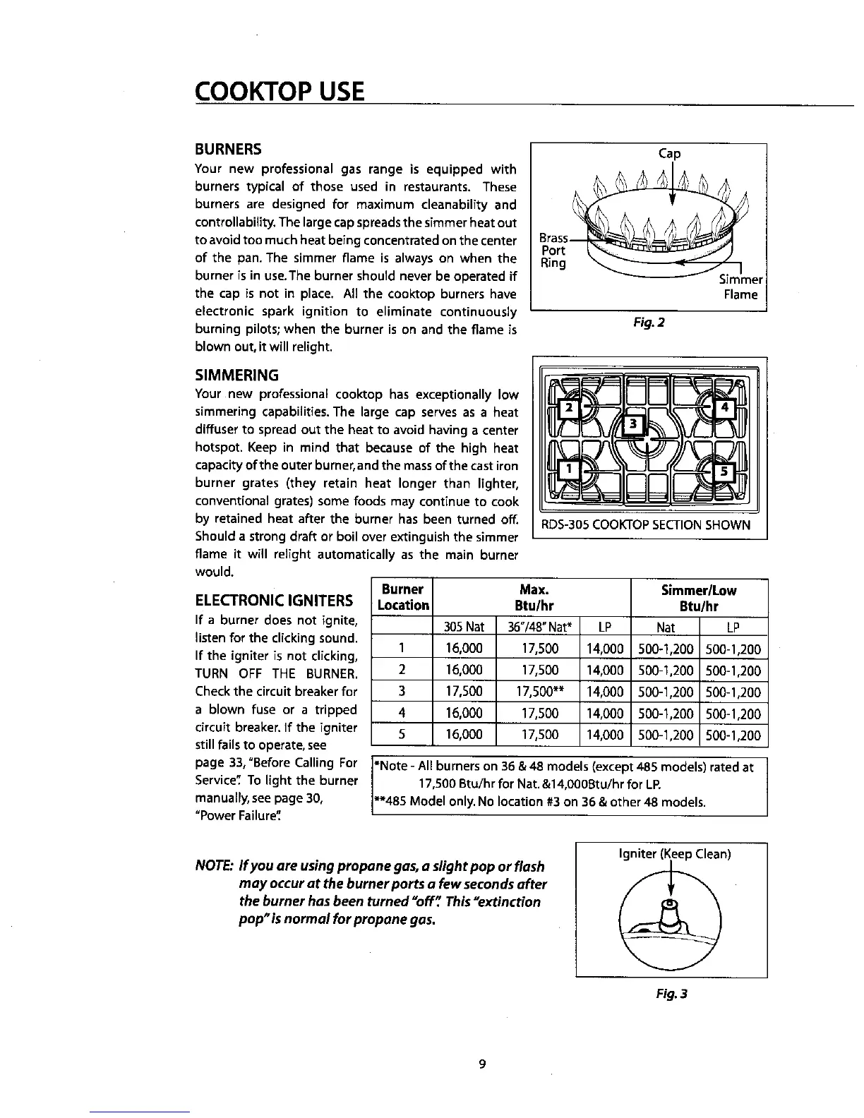 "Note - All burners on 36 & 48 models (except 485 models) rated at