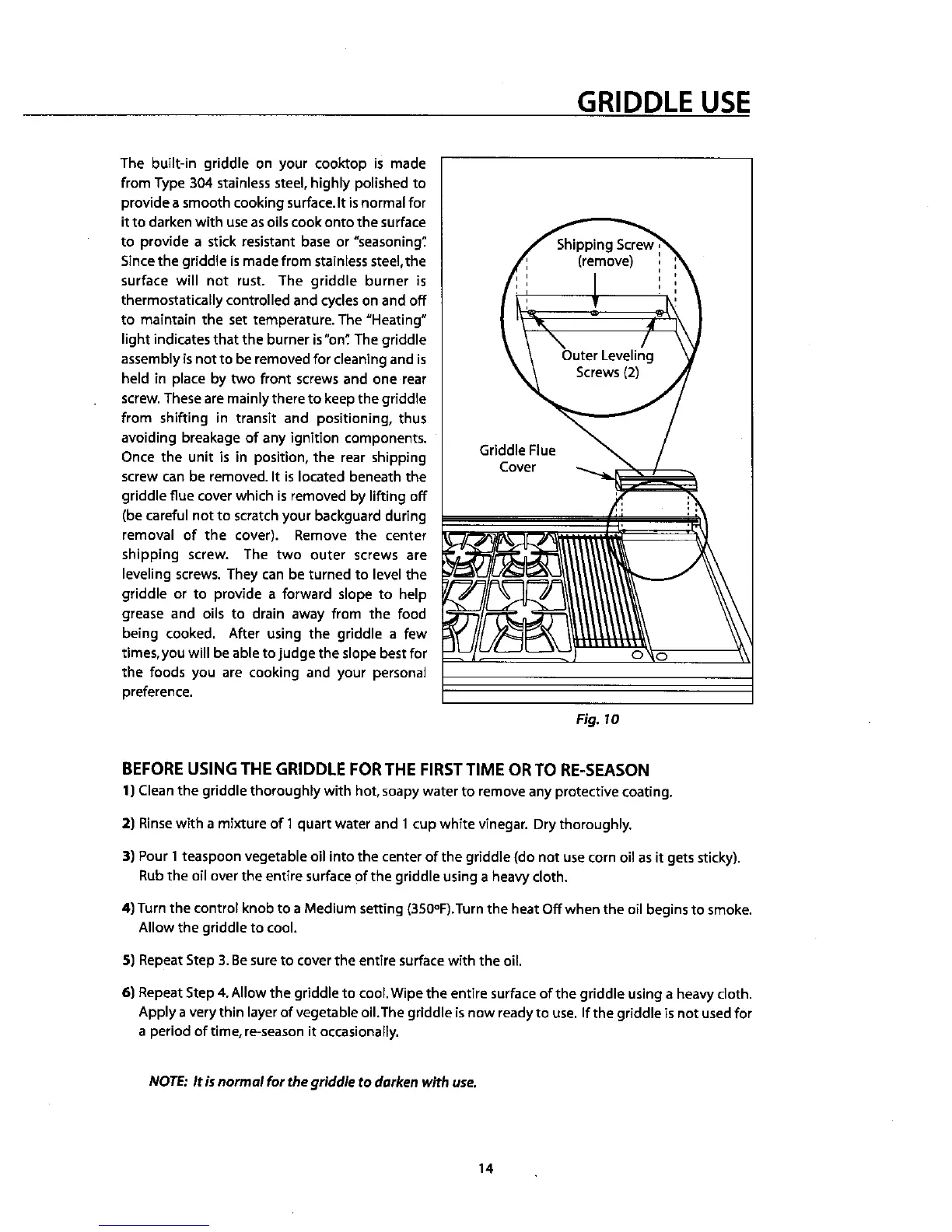 NOTE: It isnormal for the griddle to darken with use.
