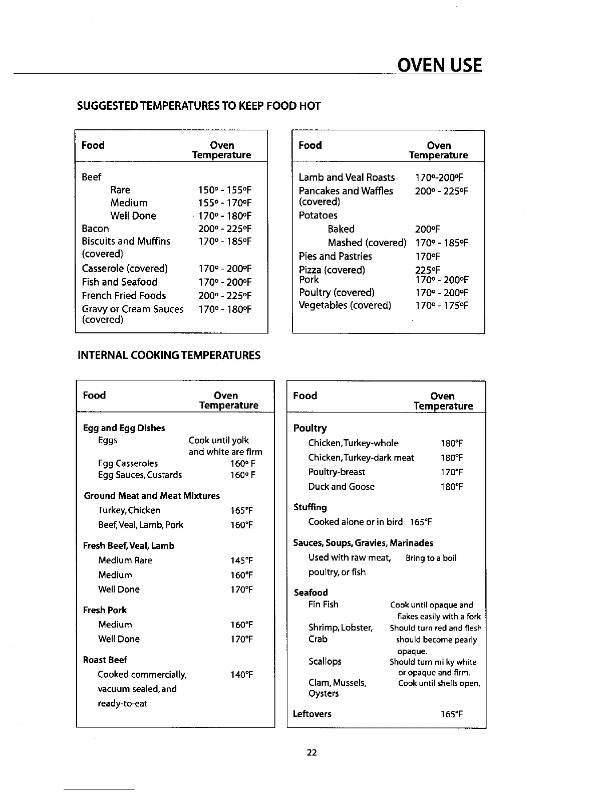 INTERNAL COOKING TEMPERATURES