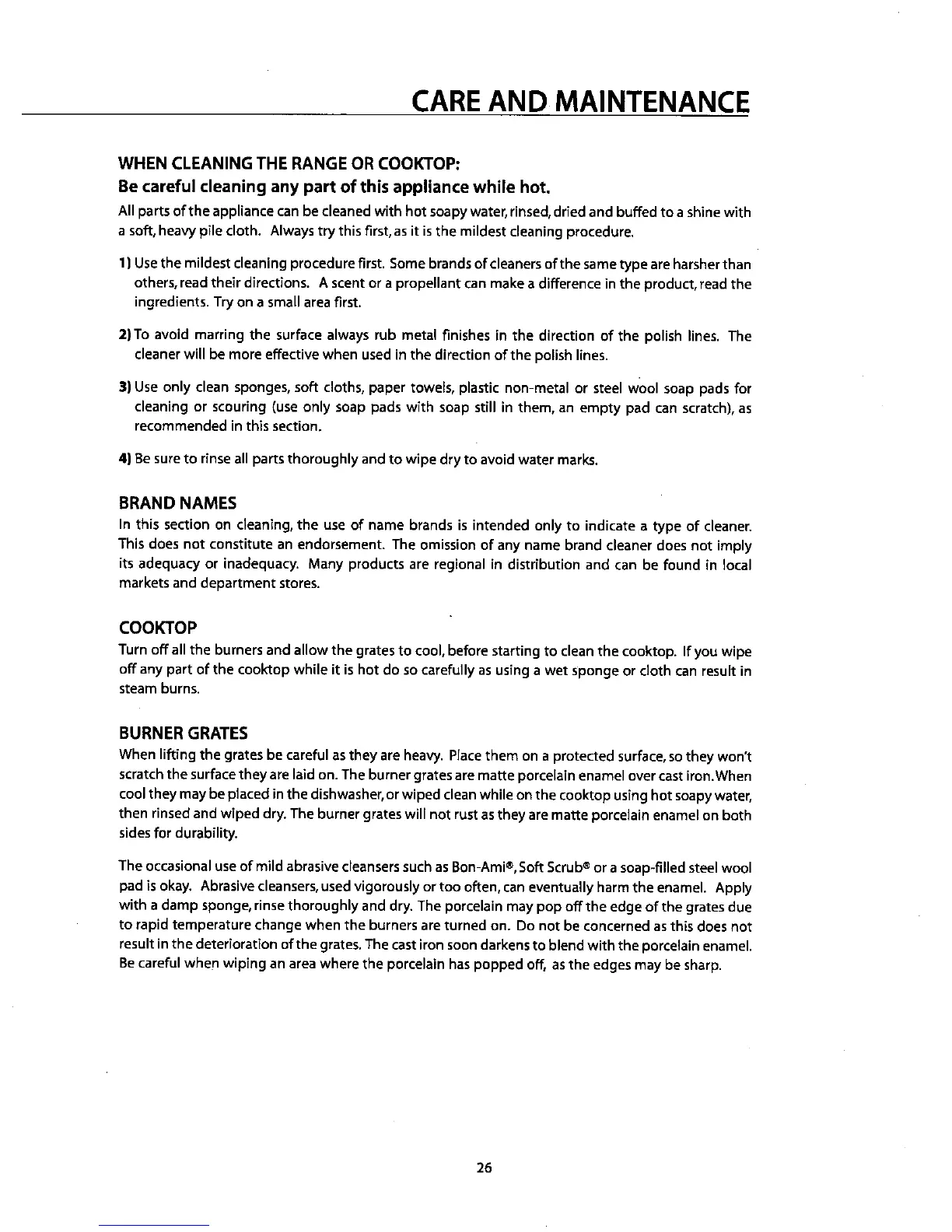 WHEN CLEANING THE RANGE OR cooIcroP:
