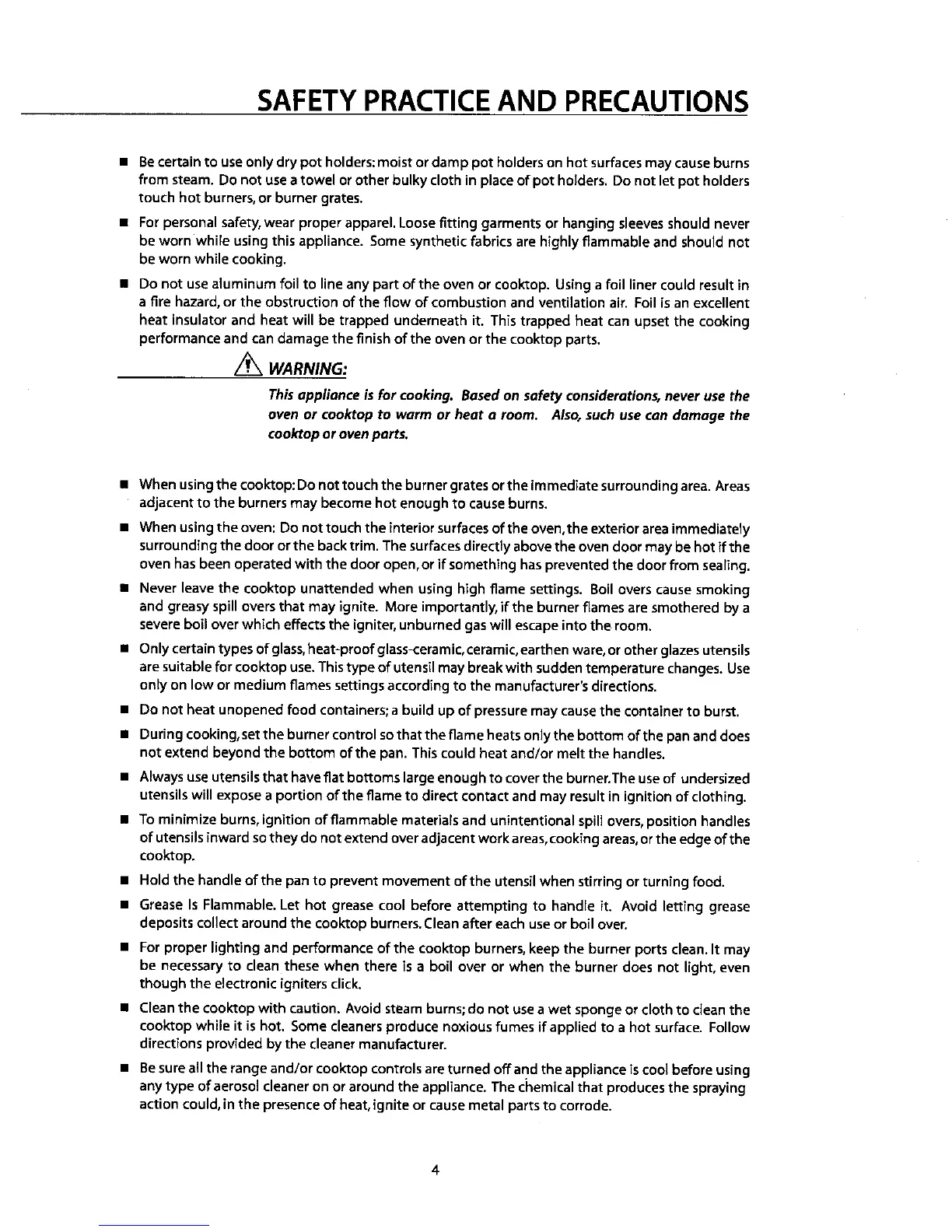 • Be certain to use only dry pot holders: moist or damp pot holders on hot surfaces may cause burns