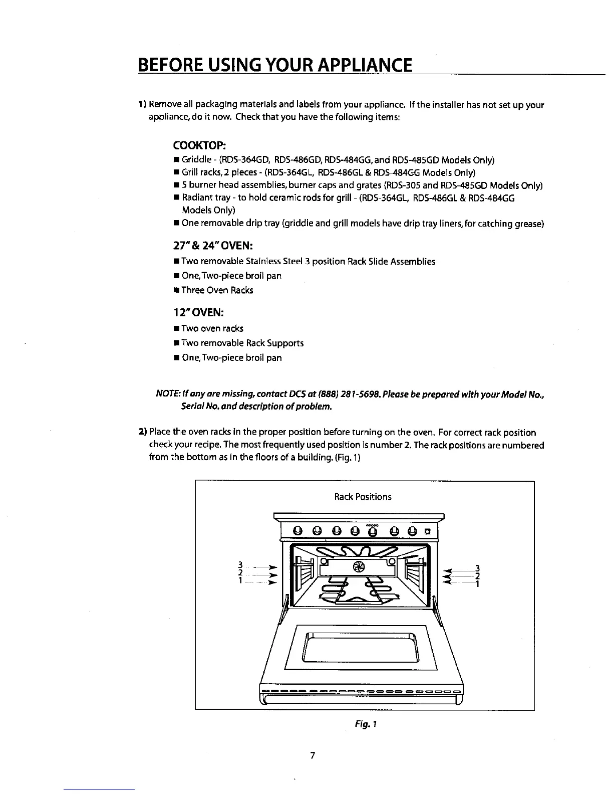 NOTE:If any ore missing, contact DCS at (888) 281-5698. Please be prepared with your Model No.,