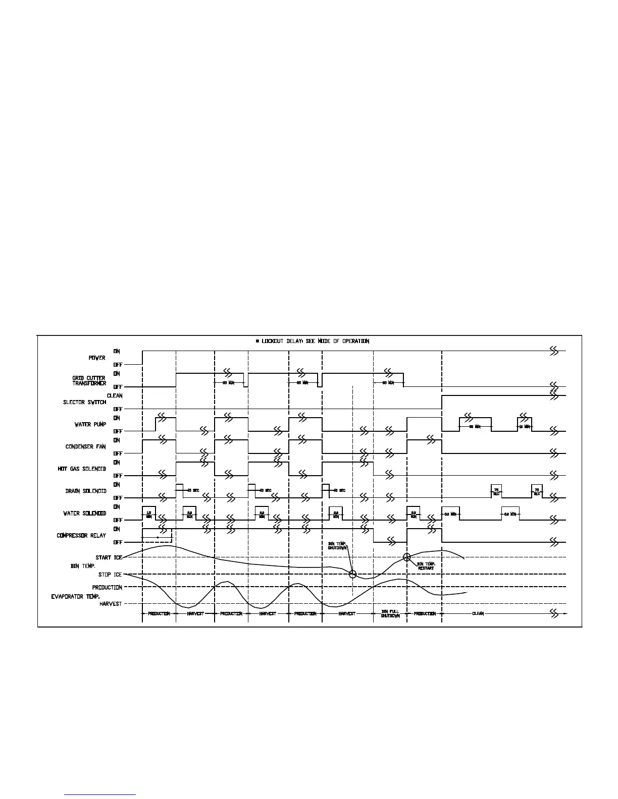 cycle will begin. If at any time the bin thermistor senses a temperature at or below the “stop ice” setpoint, any production or