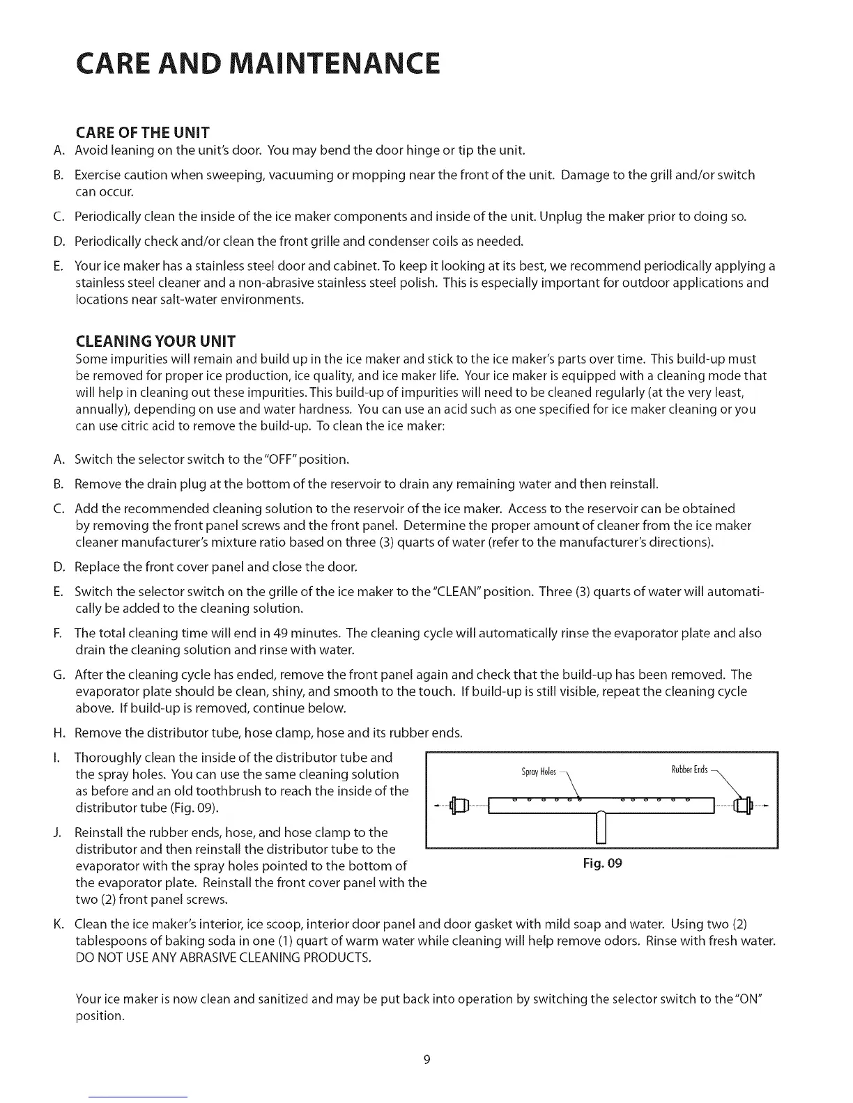 be removed for proper ice production, ice quality, and ice maker life. Your ice maker isequipped with a cleaning mode that