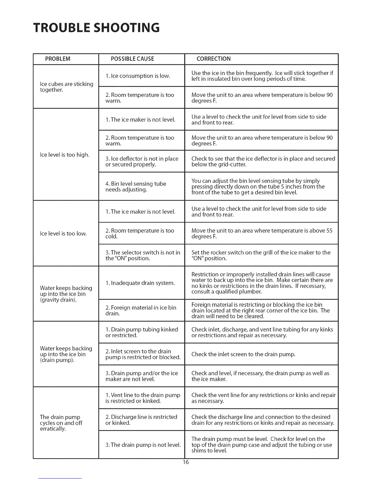 Ice level istoo high. 3. Ice deflector is not in place Check to see that the ice deflector is in place and secured