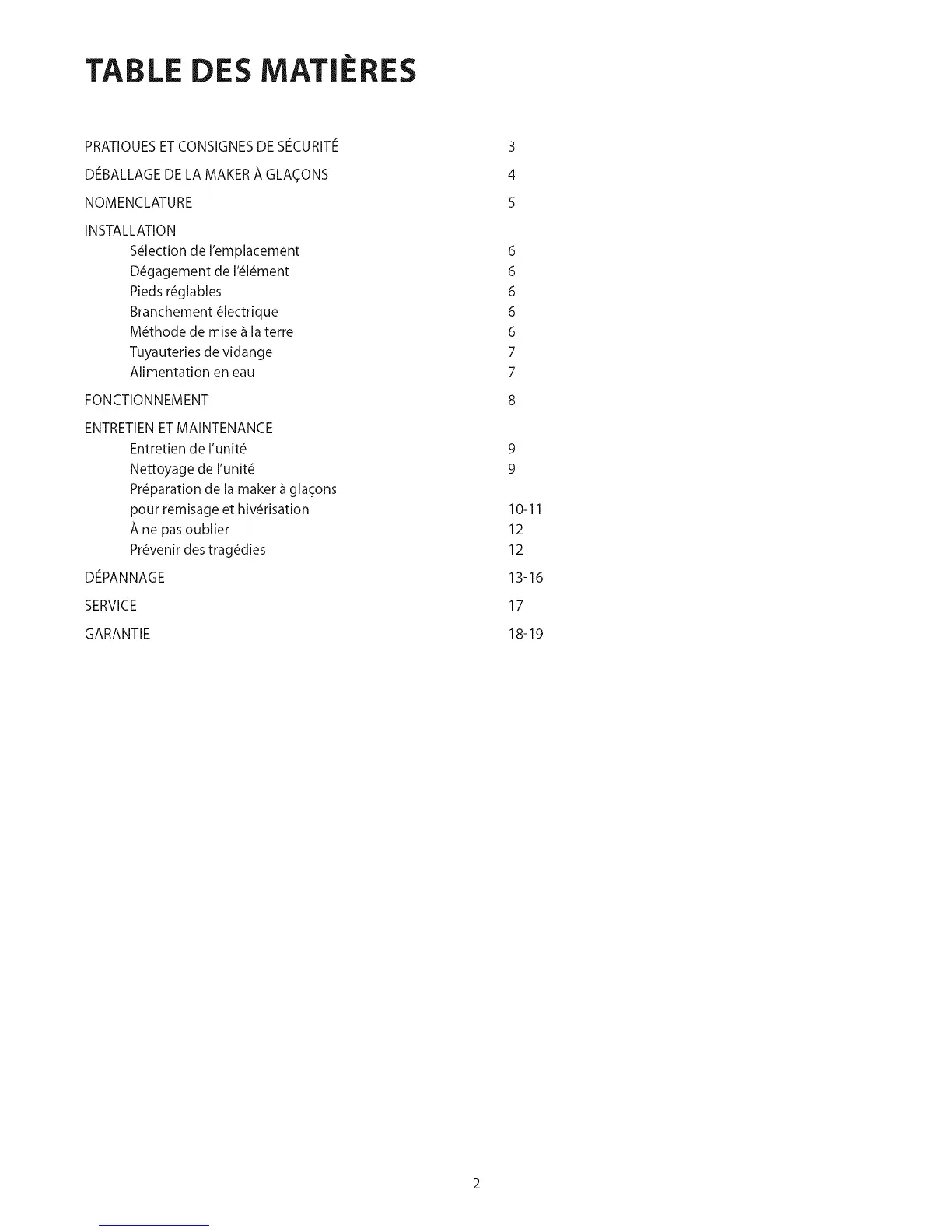 TABLE DES MATIERES