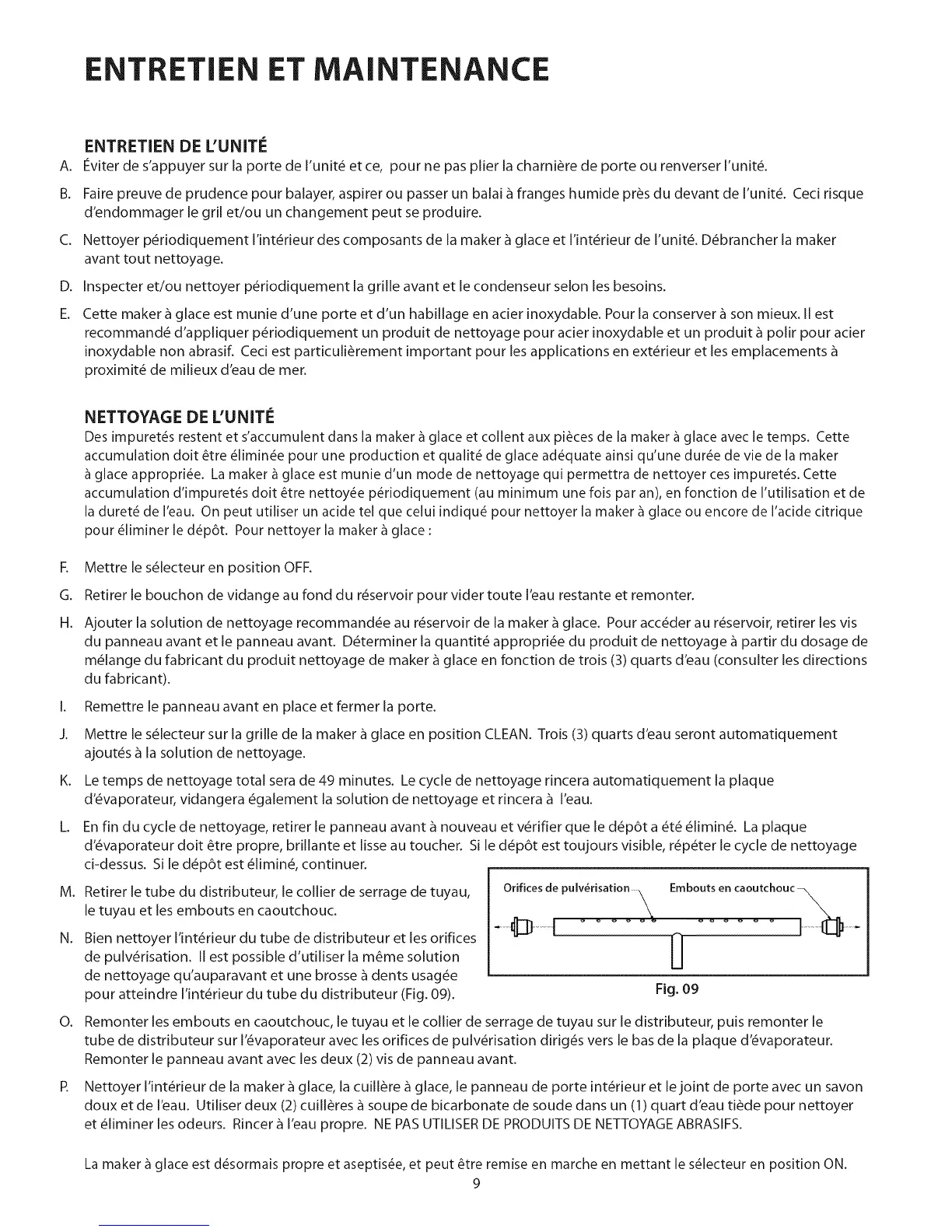 C. Nettoyer p_riodiquement I'int_rieur des composants de la maker _ glace et I'int_rieur de I'unit_. D_brancher la maker