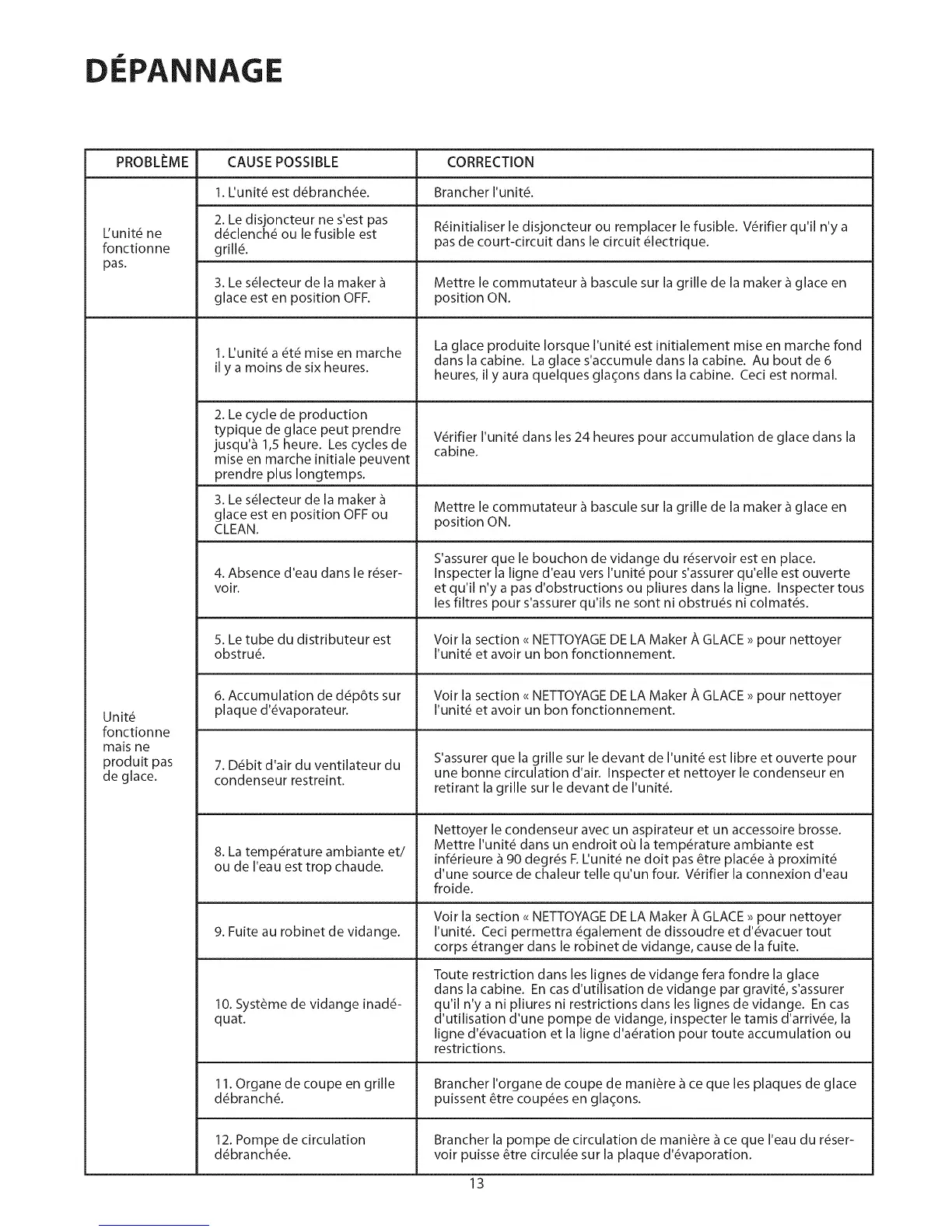 Voir la section <_NETTOYAGEDE LA Maker A GLACE >>pour nettoyer