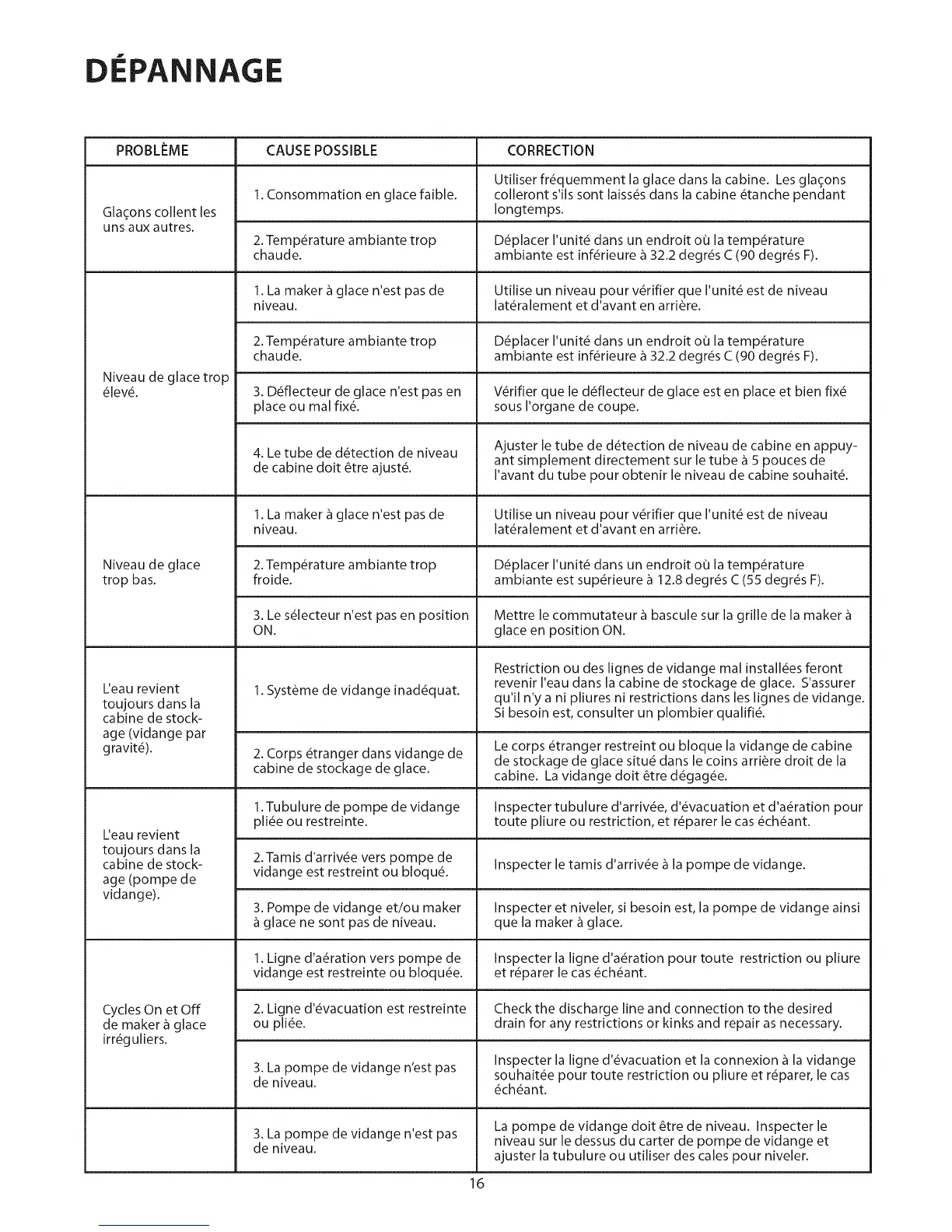 Niveau de glace 2.Temperature ambiante trop D_placer I'unit_ dans un endroit o0 la temperature