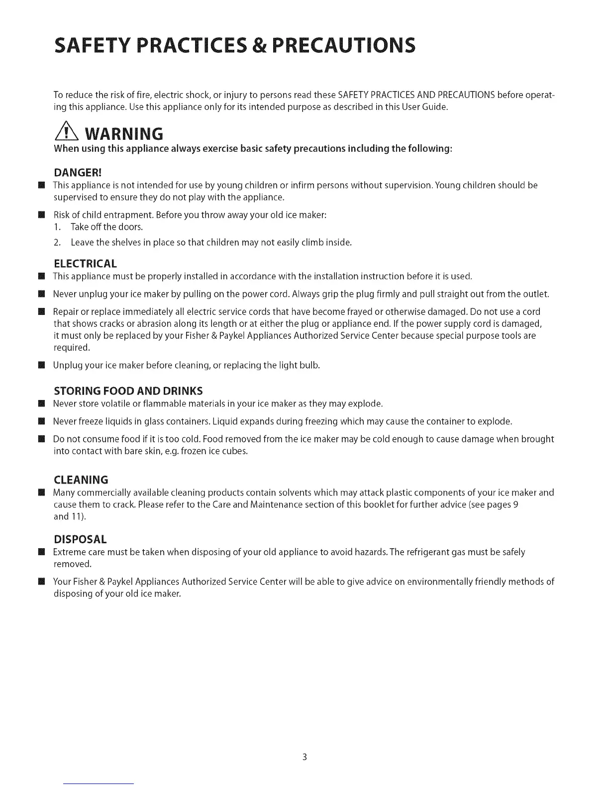 [] Do not consume food if it is too cold. Food removed from the ice maker may be cold enough to cause damage when brought