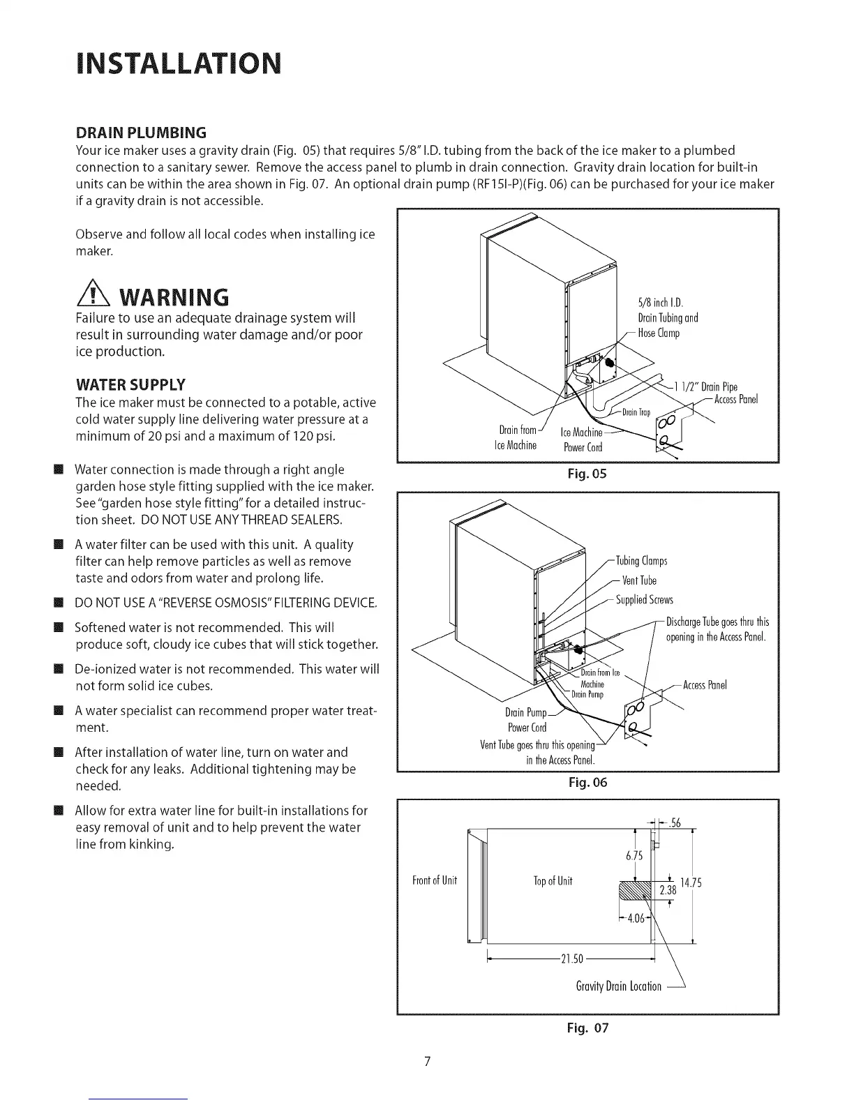 units can be within the area shown in Fig. 07. An optional drain pump (RF151-P)(Fig. 06) can be purchased for your ice maker