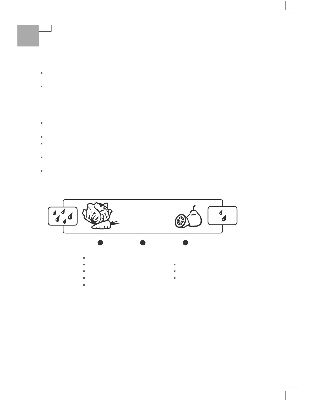 Remember a small amount of water in the bins is beneficial for fruit and vegetable storage.