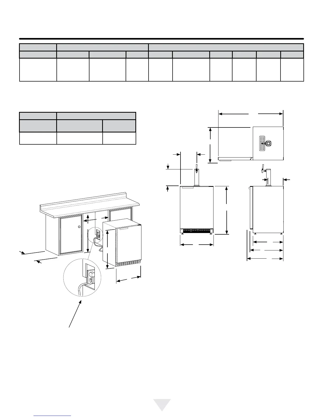 dimension plus 1" (2.5 cm) for thickness of power cord plug