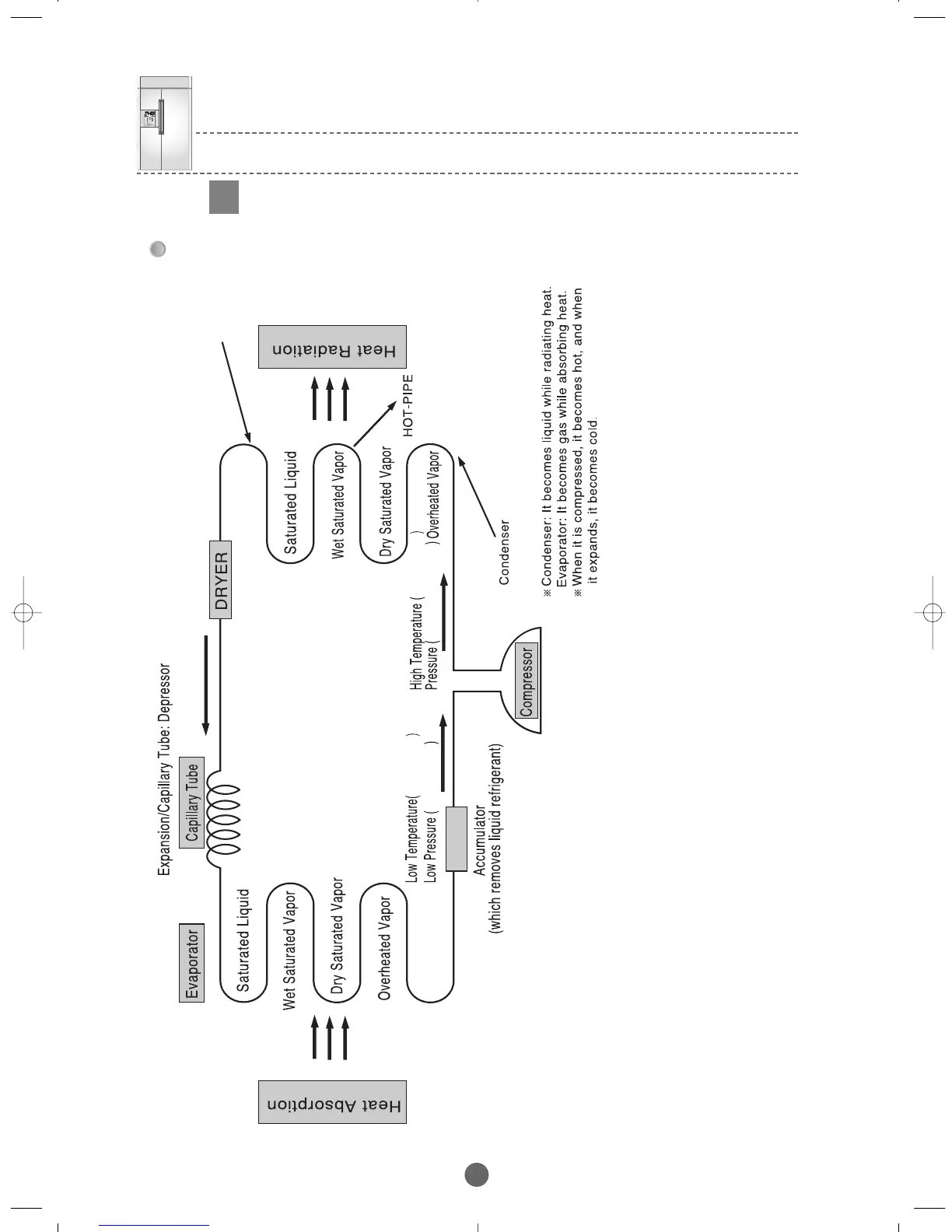 ※ Components of the Cycle: Compressor, condenser, capillary tube and evaporator (cooler)