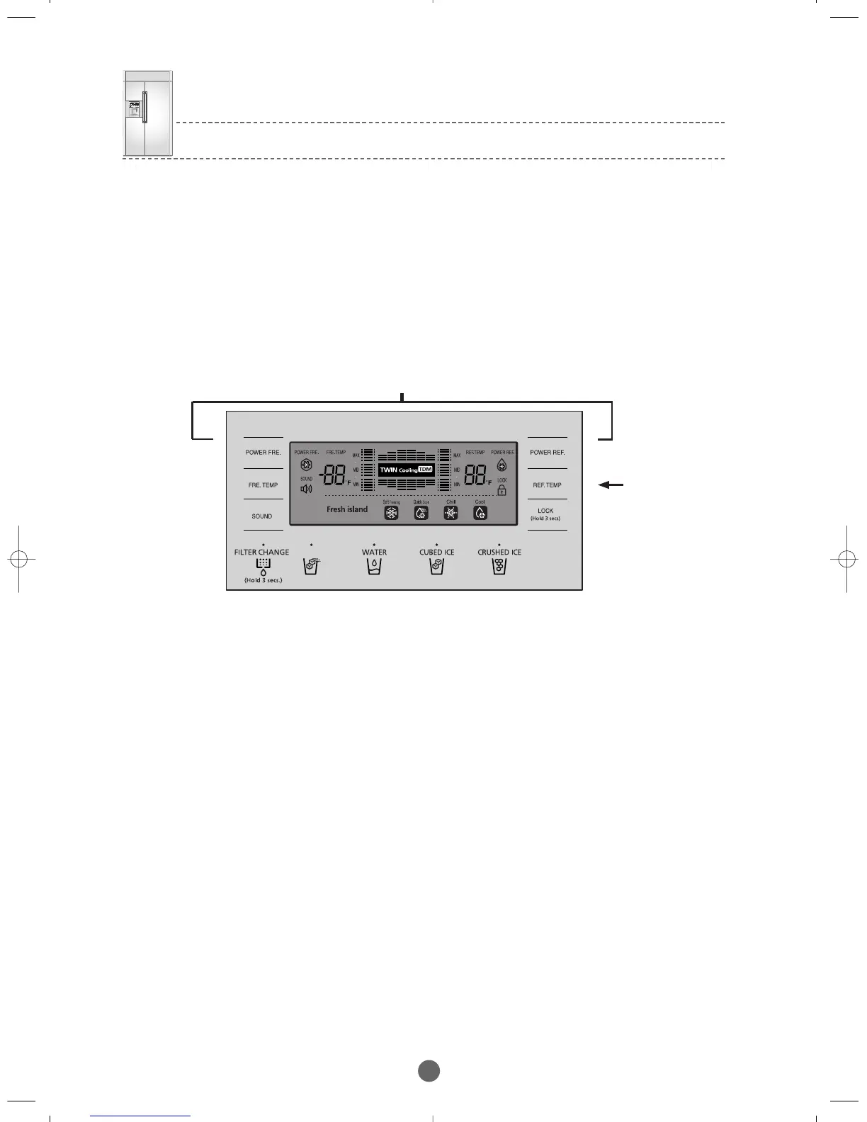 previous functions (POWER. FRE , POWER. REF F-and R-Room Settings,ICE Types,etc.)related to the PANEL DISPLAY.