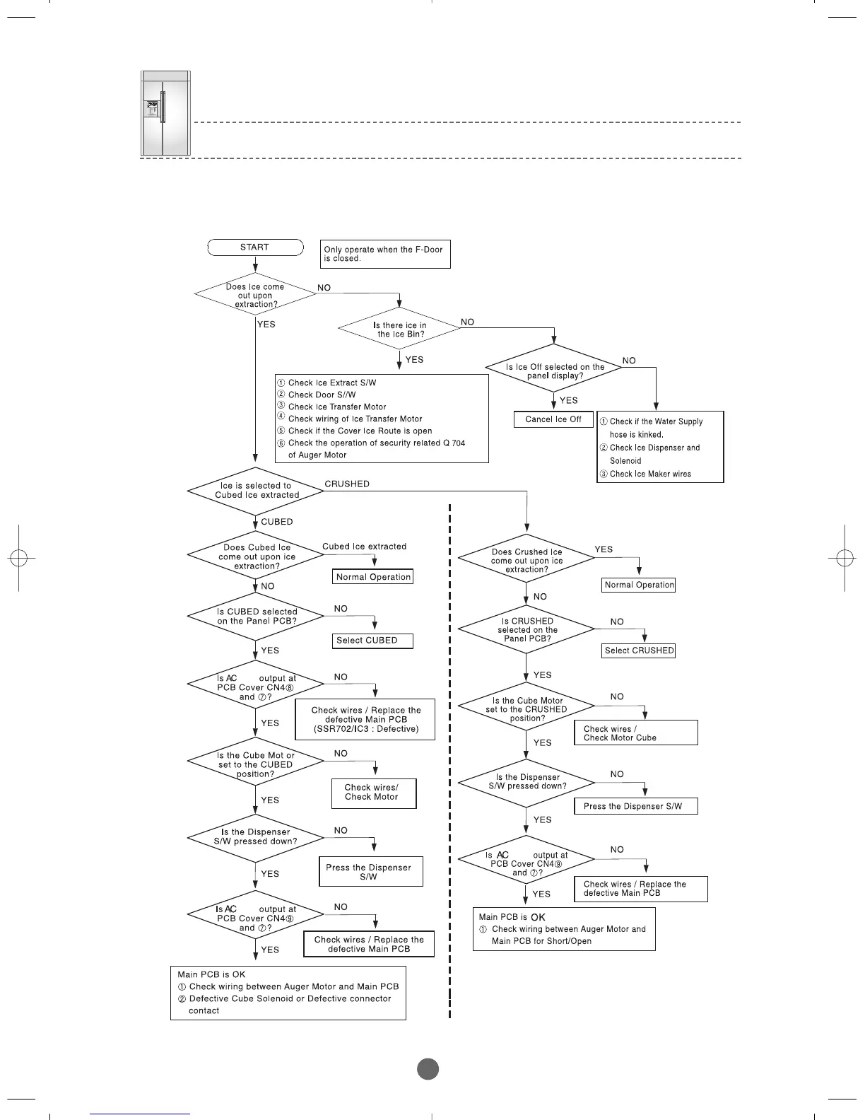 13. When CRUSHED or CUBED does not operate properly