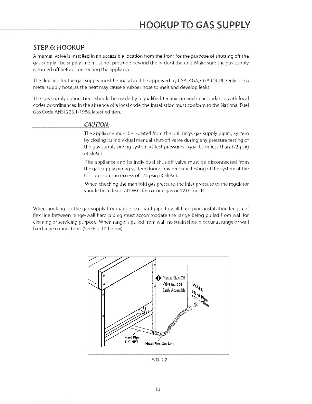flex line between range/wail hard piping must accommodate the range being pulled from wail for