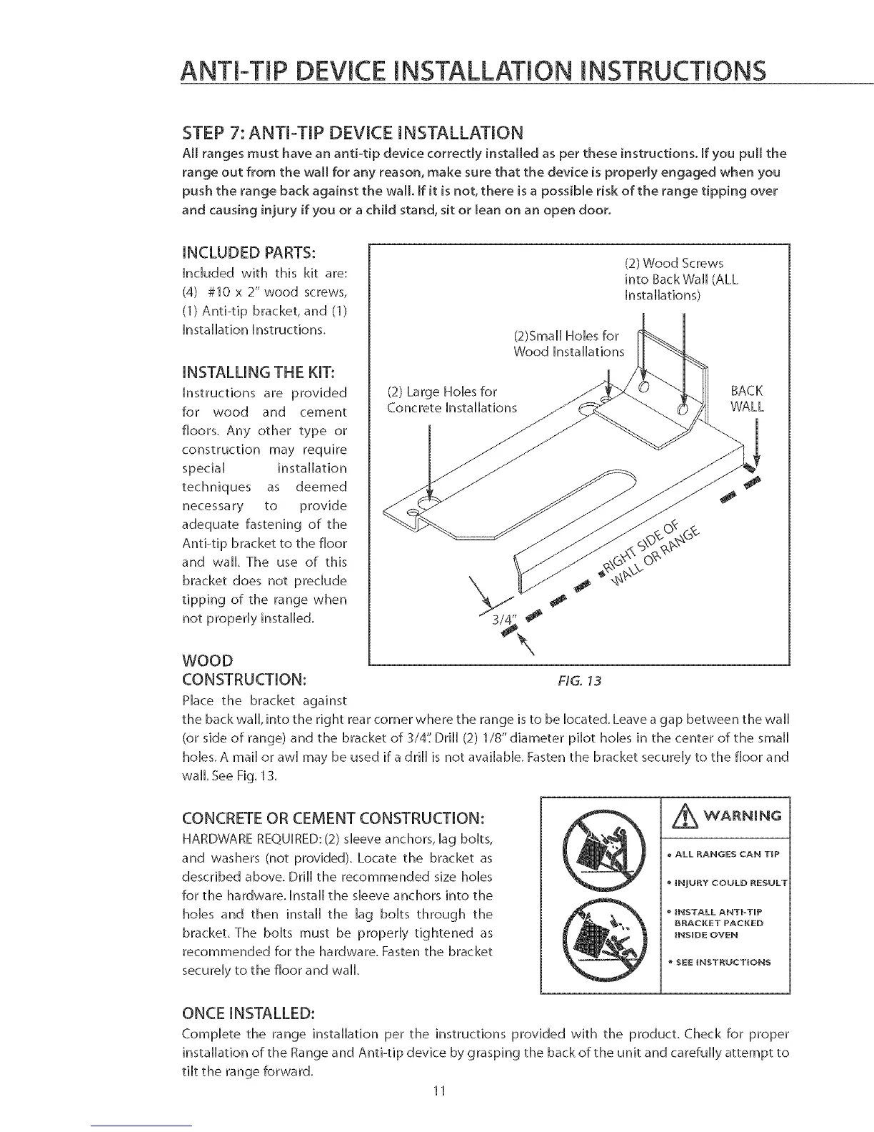 ANTI-TIP DEVICE INSTALLATION INSTRUCTIONS