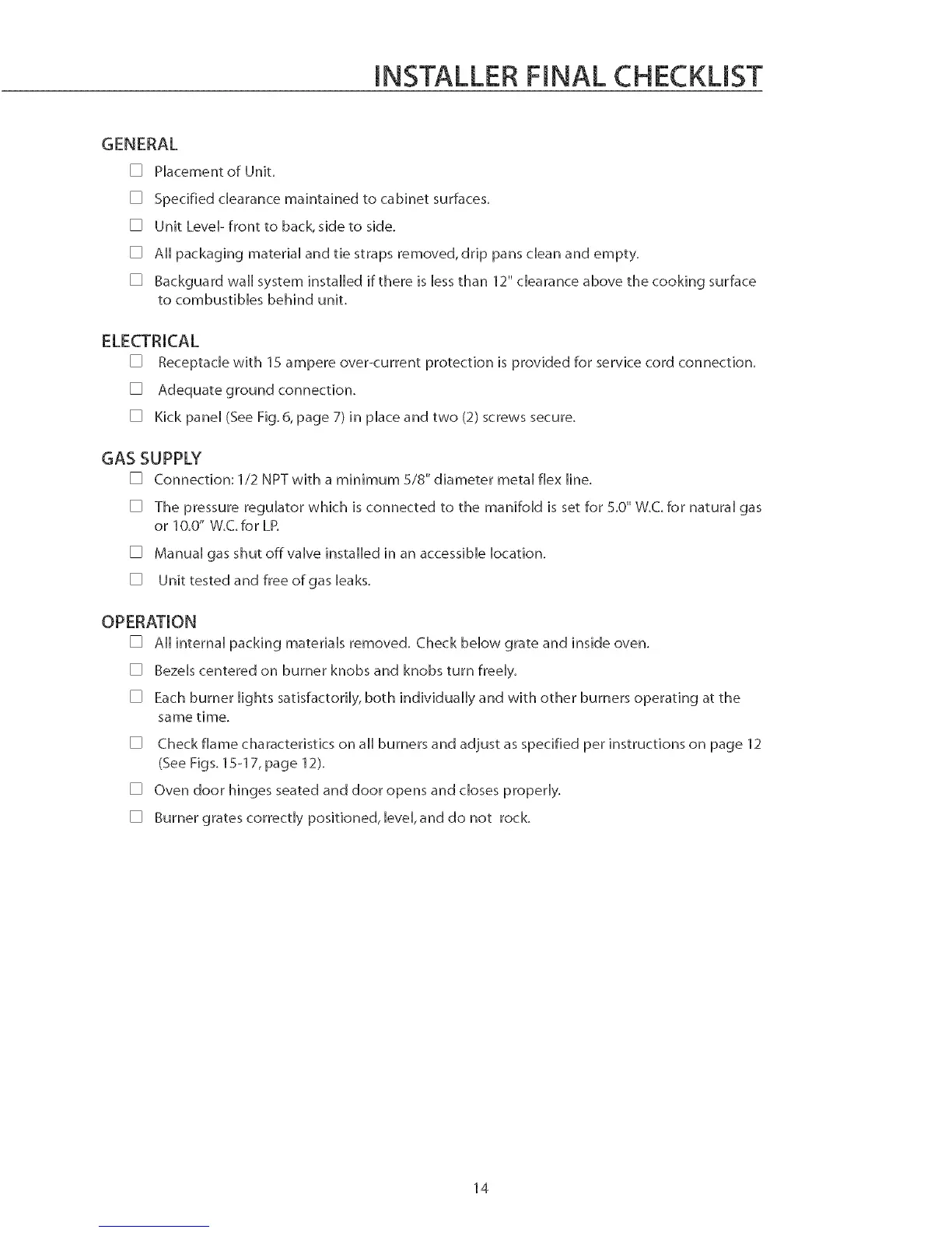 INSTALLER FINAL CHECKLIST