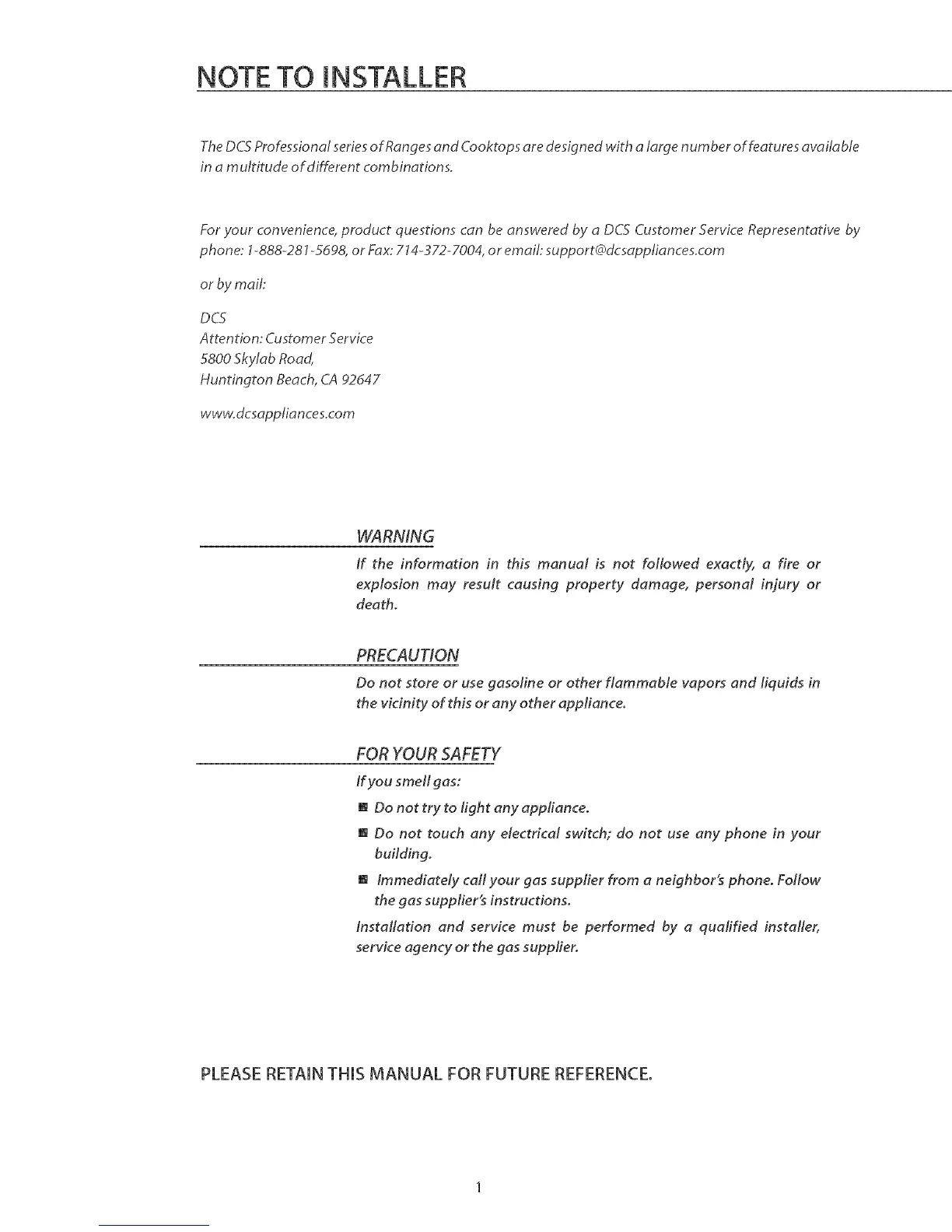 PLEASE RETAIN THIS MANUAL FOR FUTURE REFERENCE,