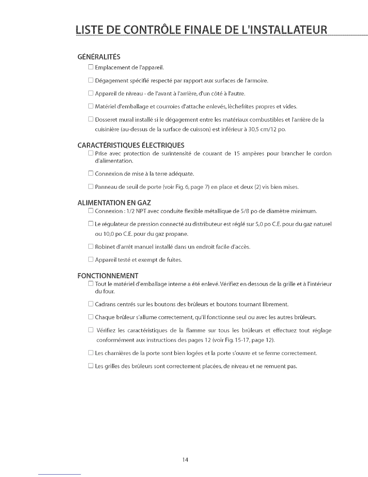 L[STE DE CONTROLE FINALE DE L'[NSTALLATEUR